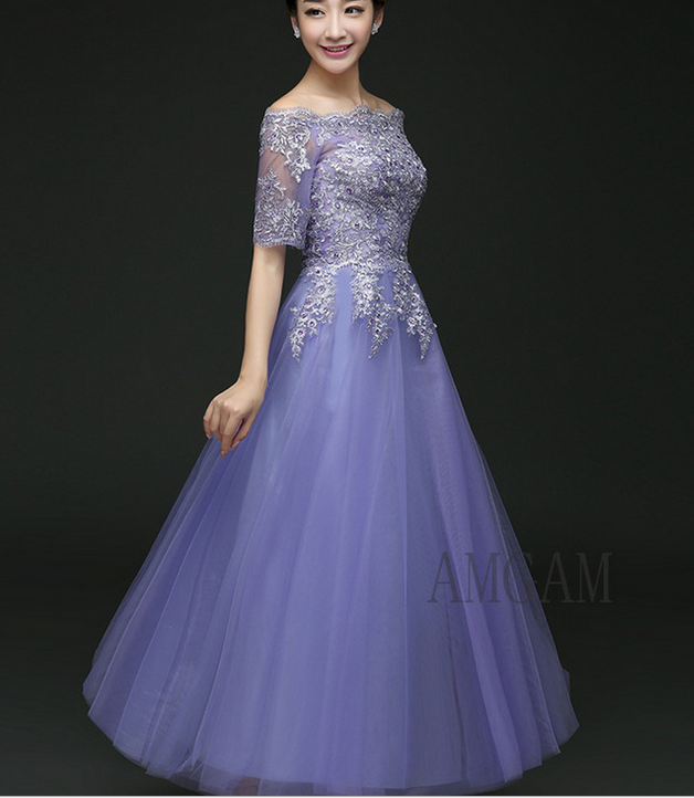 - Light purple lace prom dress,formal dresses -