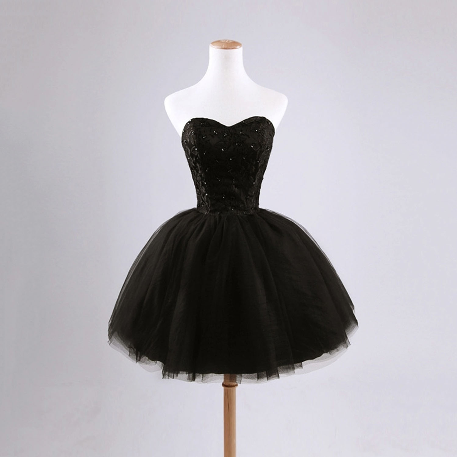- Sweetheart A-line black tulle prom dress, evening dress, bridesmaid dress -