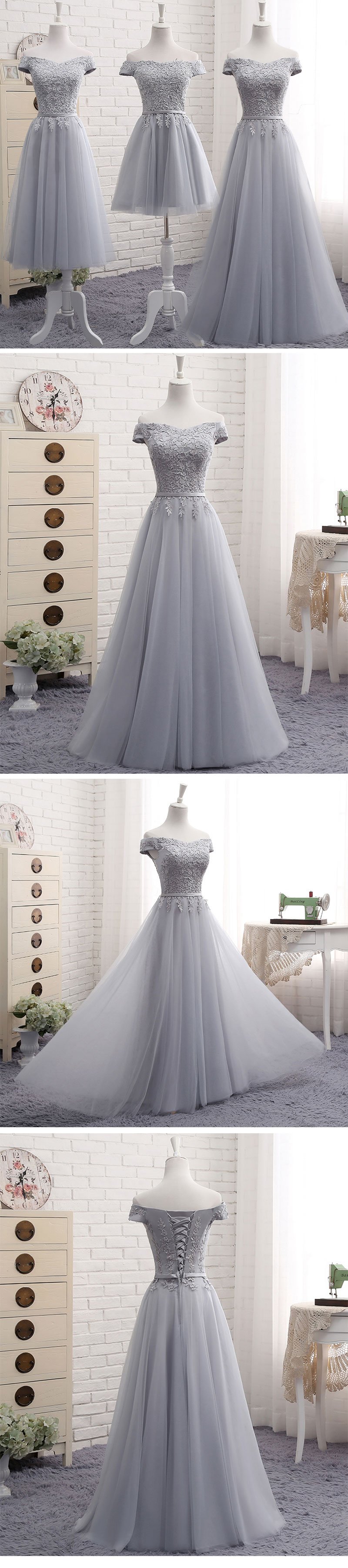 - Cute A line gray lace off shoulder prom dress, cheap evening dresses -