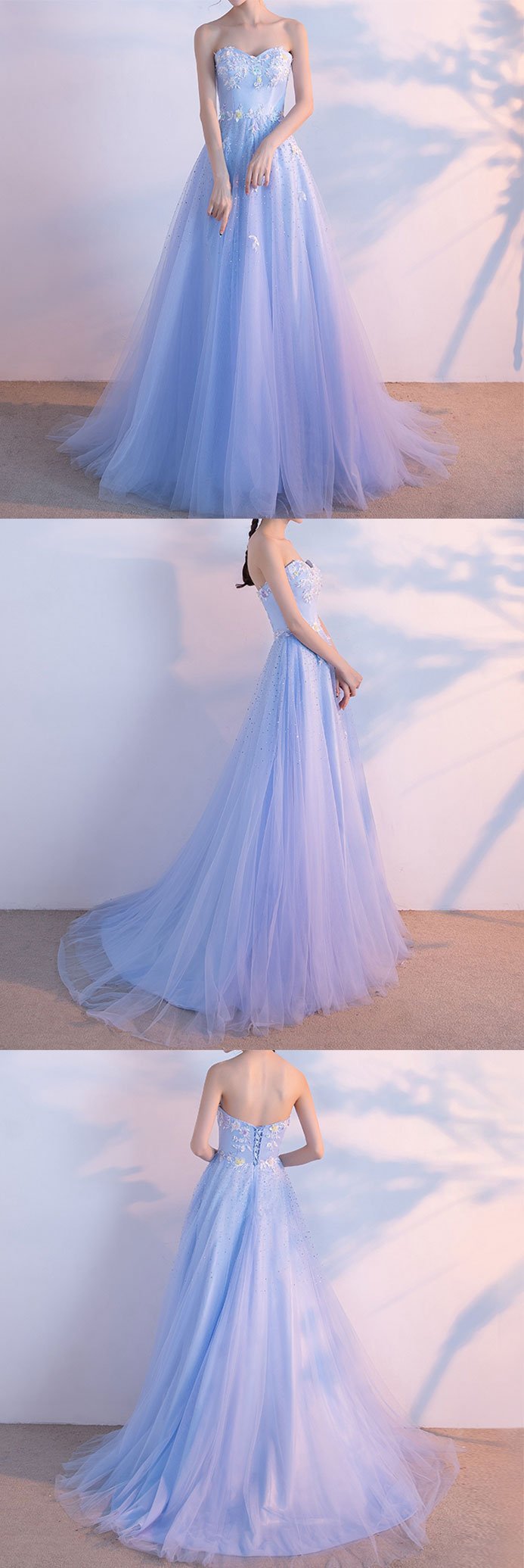 - High quality light blue sweetheart neck tulle lace long prom dress, evening dresses -
