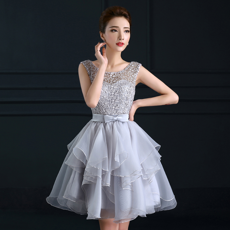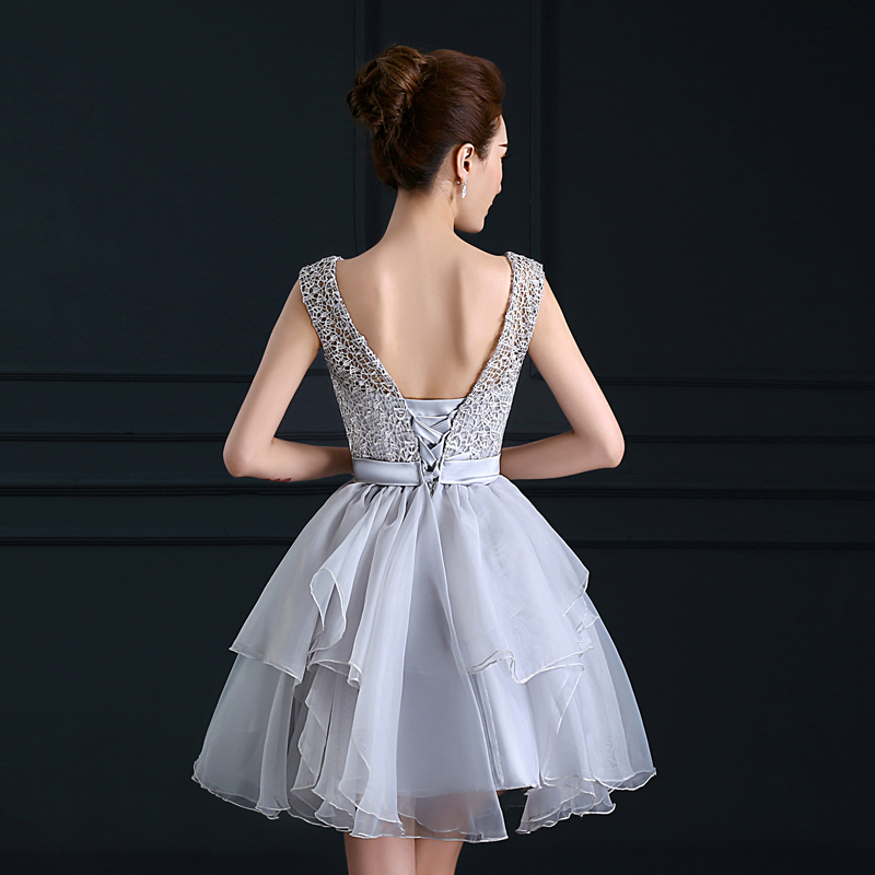 Cute grey A-line lace short prom dress, homecoming dress