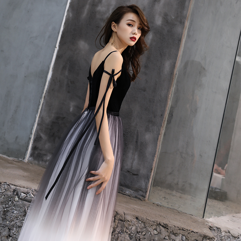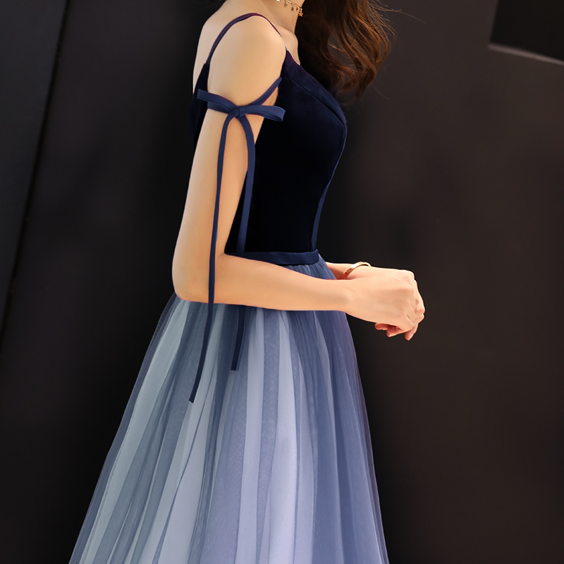 - Black v neck tulle velvet long prom dress, evening dress -