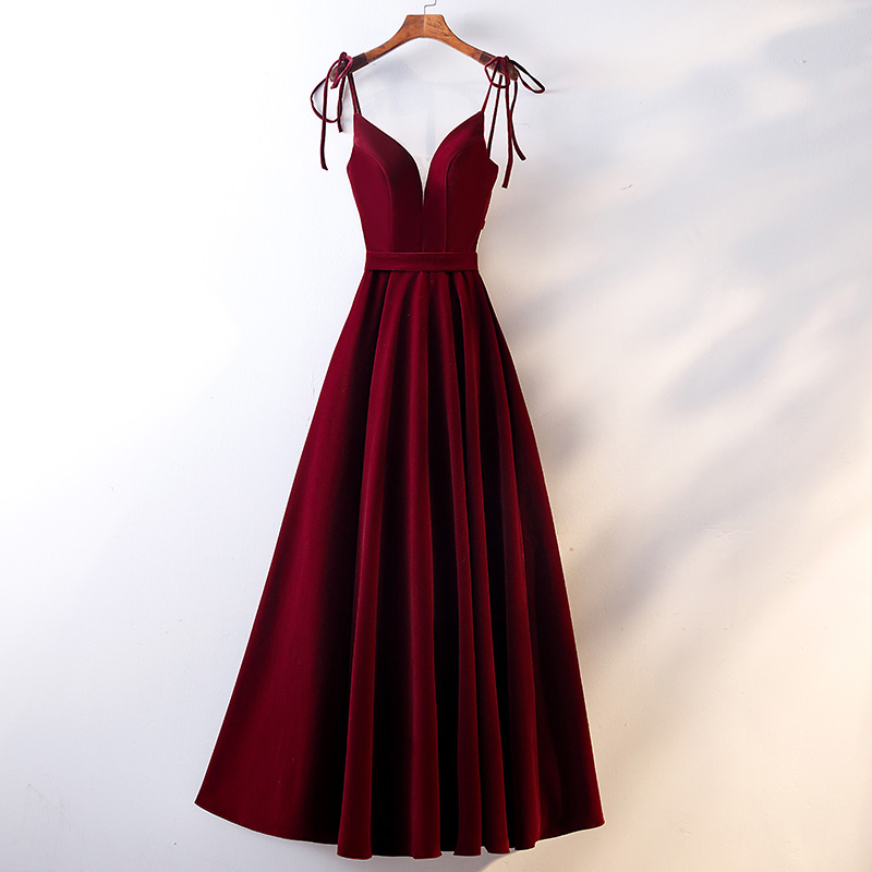 - Burgundy velvet long prom dress, burgundy evening dress -