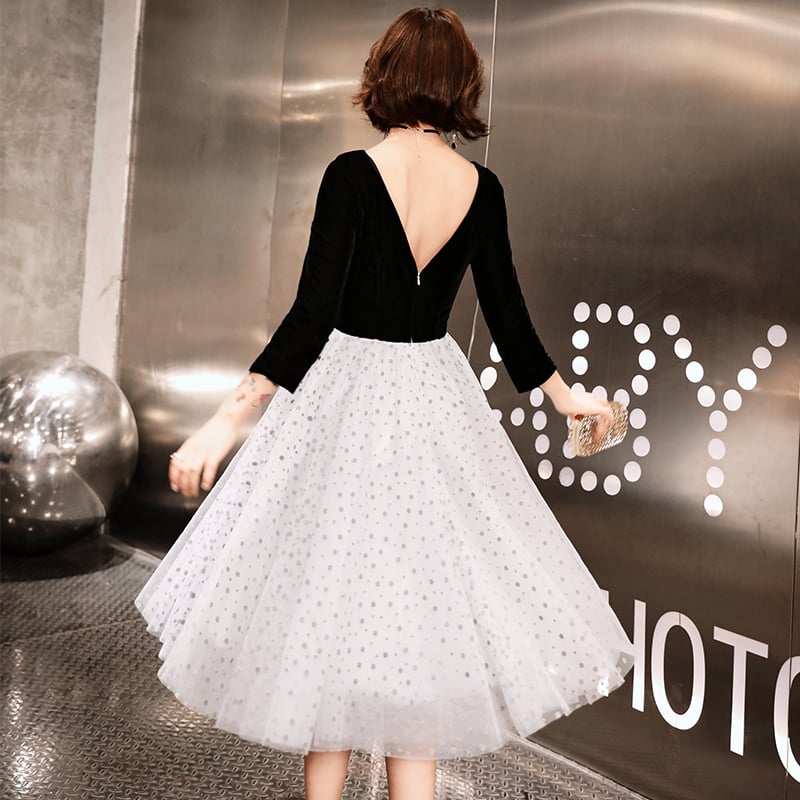 - Black v neck velvet short prom dress, homecoming dress -