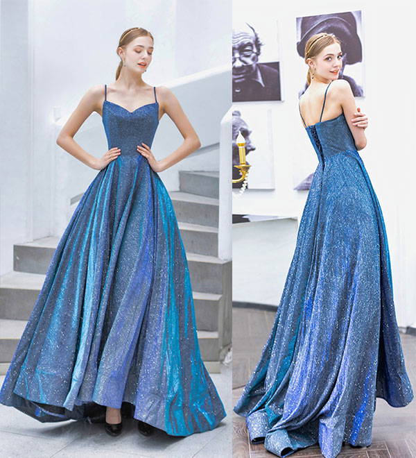 - Blue sweetheart neck long prom dress, simple evening dress -