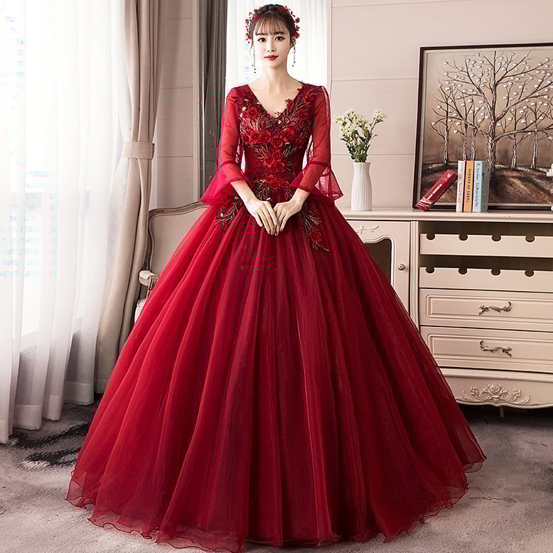Burgundy v neck tulle lace long prom dress, evening dress · Little Cute · Online Store Powered by Storenvy
