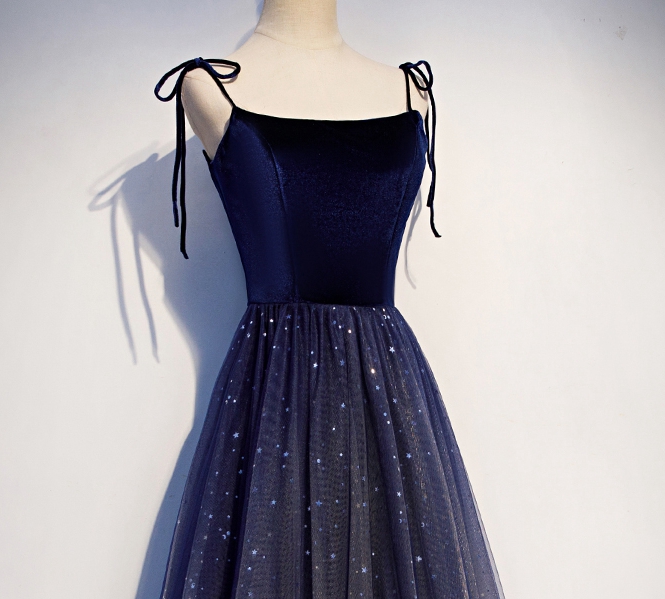 - Dark Blue Velvet Tulle Long Prom Dress, Evening Dress -