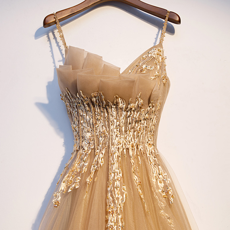 Gold v neck tulle lace prom dress, evening dress · Little Cute · Online Store Powered by Storenvy