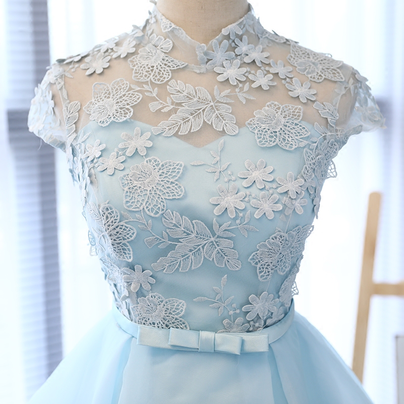 Blue lace tulle short prom dress, homecoming dress