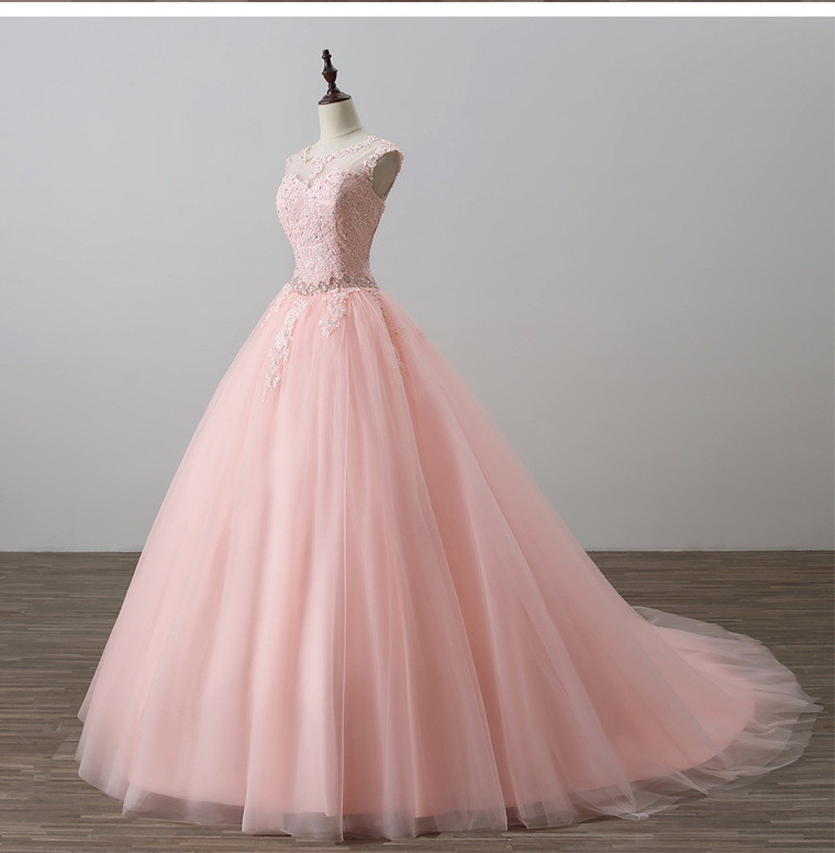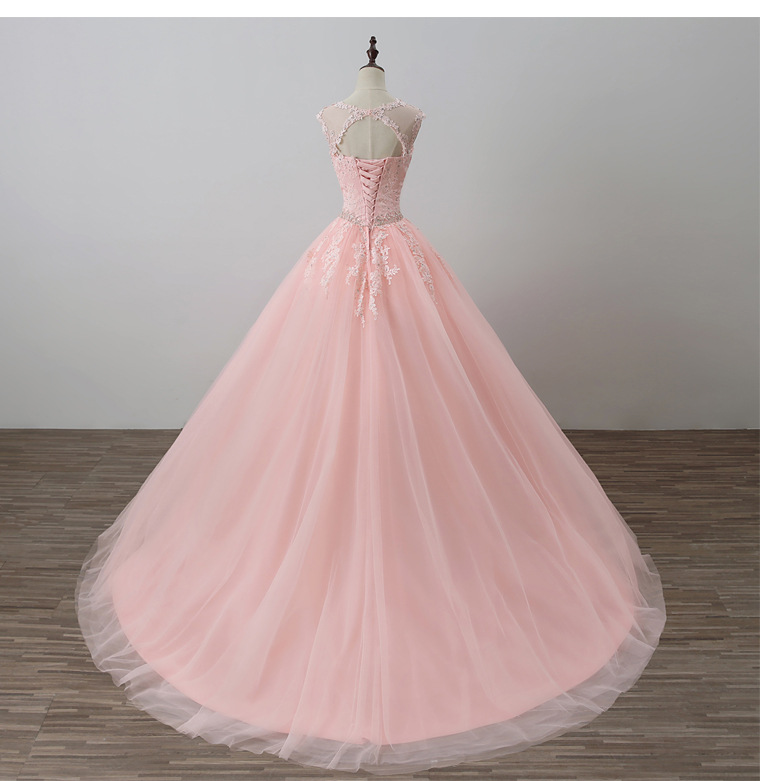 - Pink Tulle Lace Long Prom Gown, Pink Evening Dress -