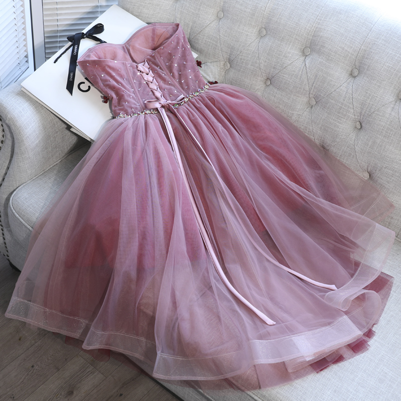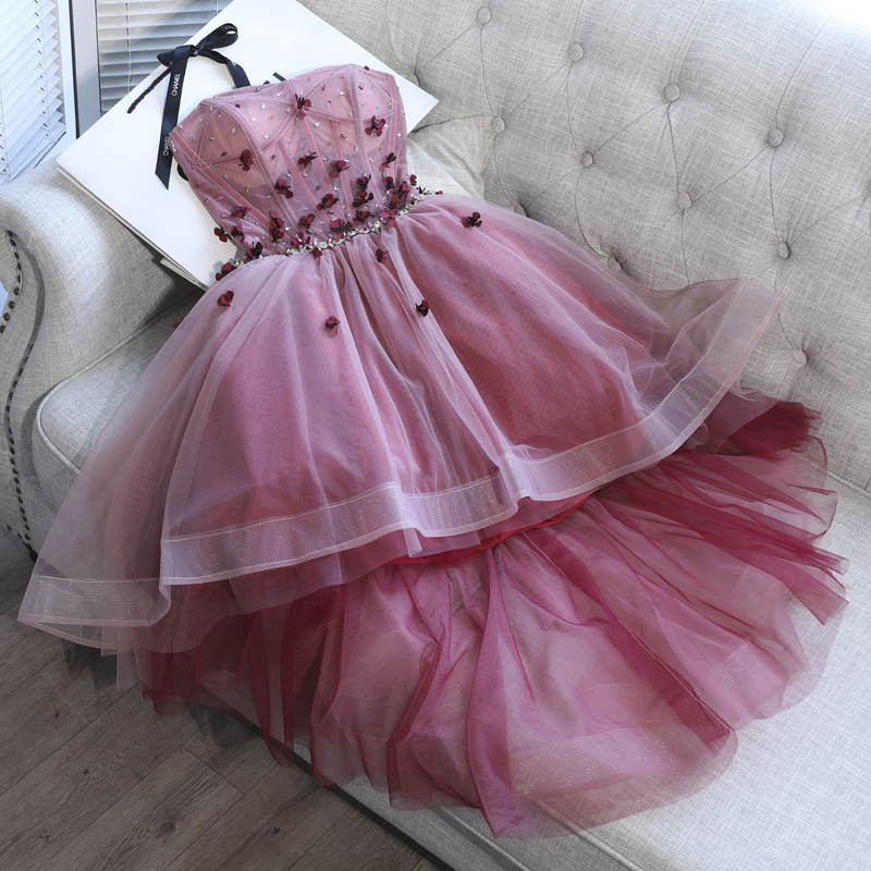 - Pink tulle sweetheart high low prom dress, homecoming dress -