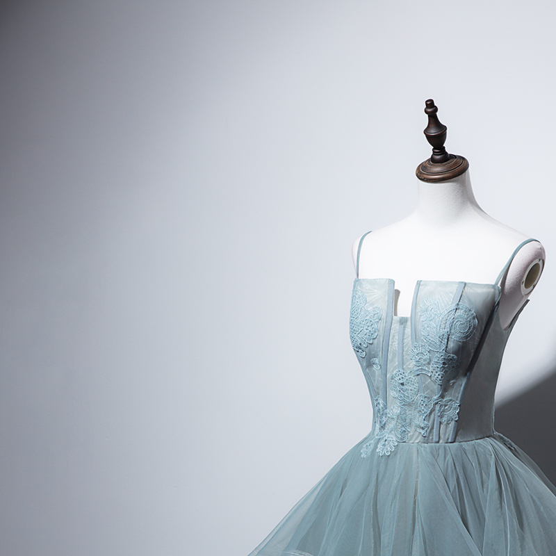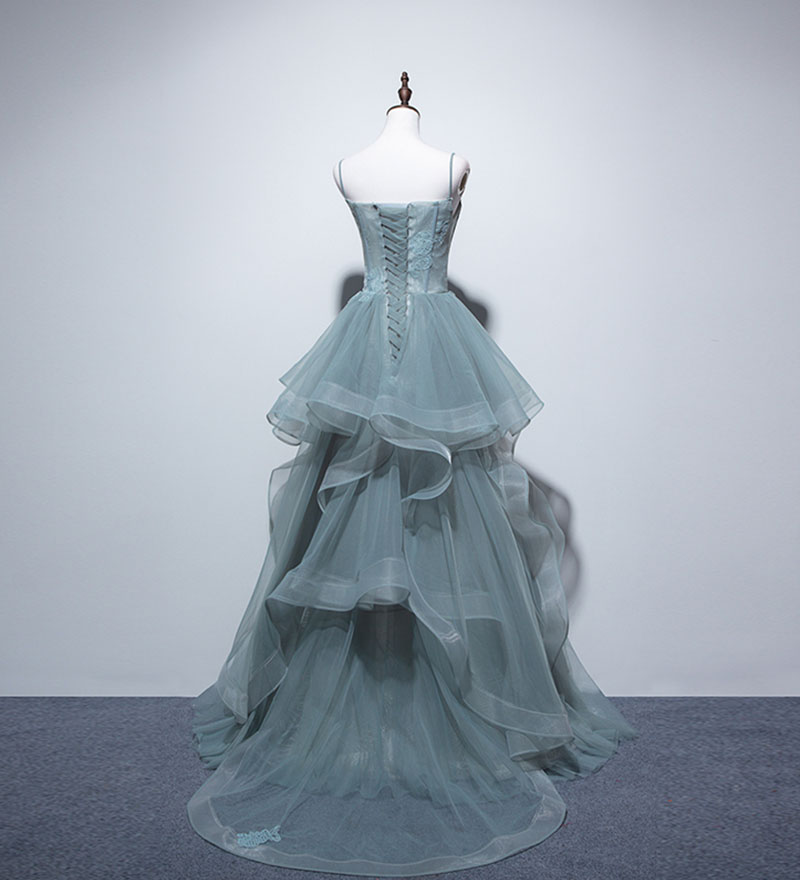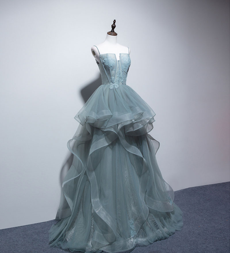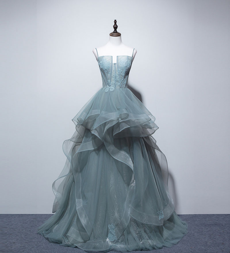 - Unique tulle lace long prom gown, evening dress -