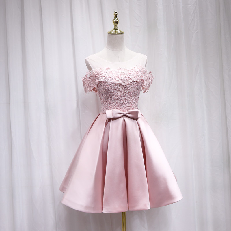 Pink satin lace short prom dress · Little Cute · Online Store Powered by Storenvy