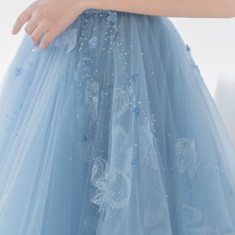 - Cute Blue Tulle Short Prom Dress Evening Dress -