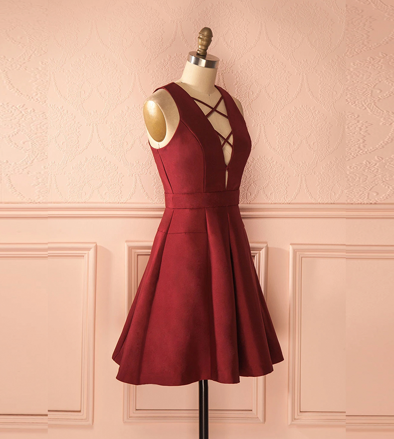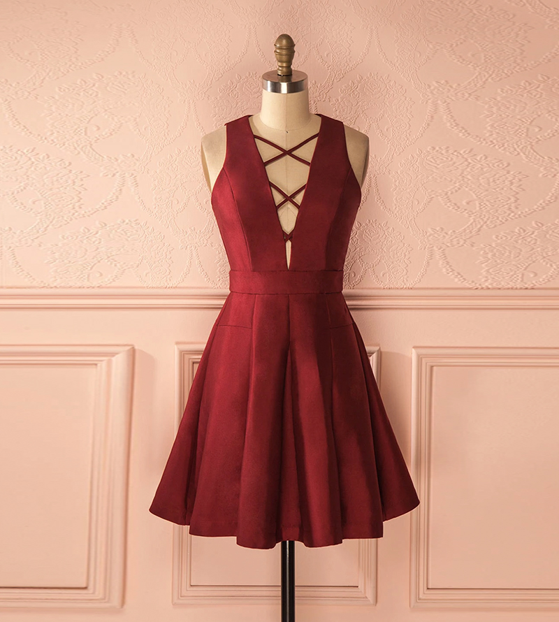 - Burgundy satin short prom dress -