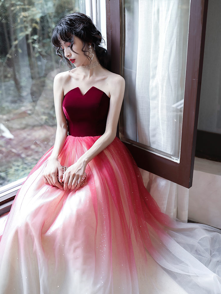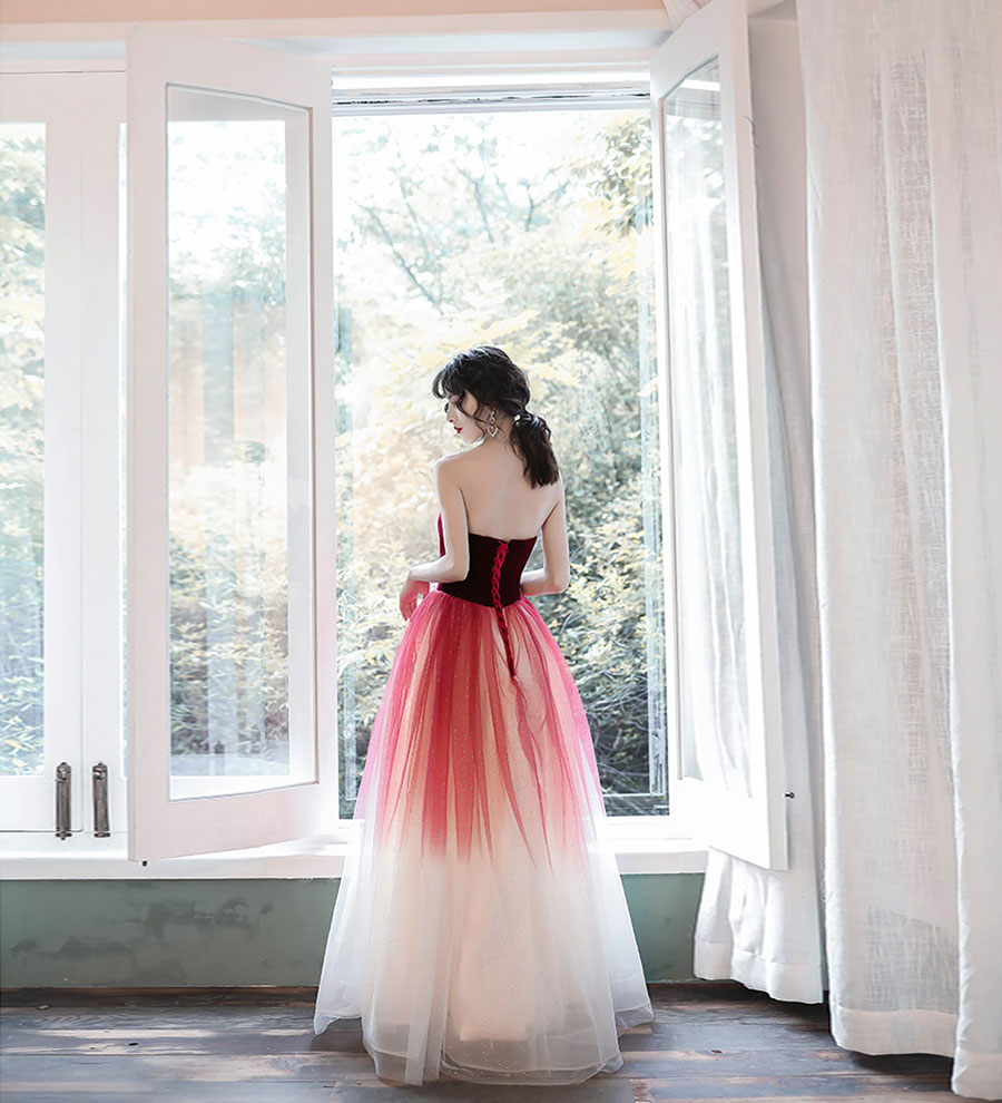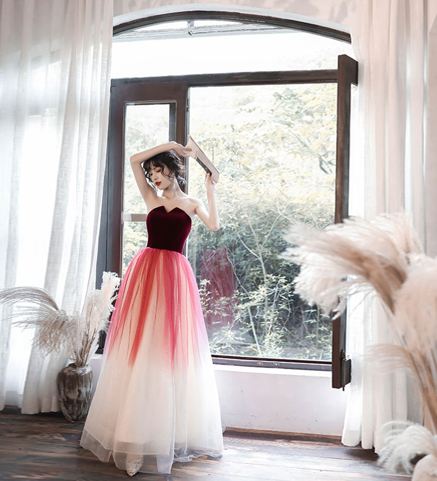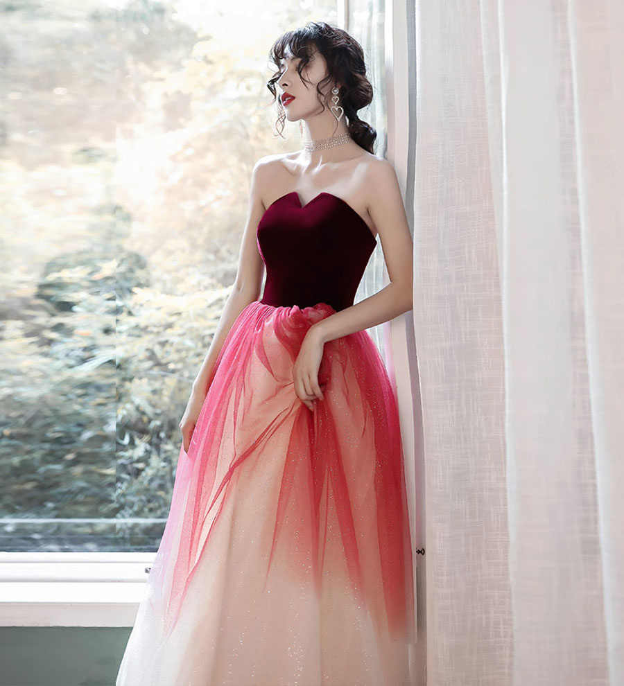 - Stylish velvet tulle long prom dress evening dress -