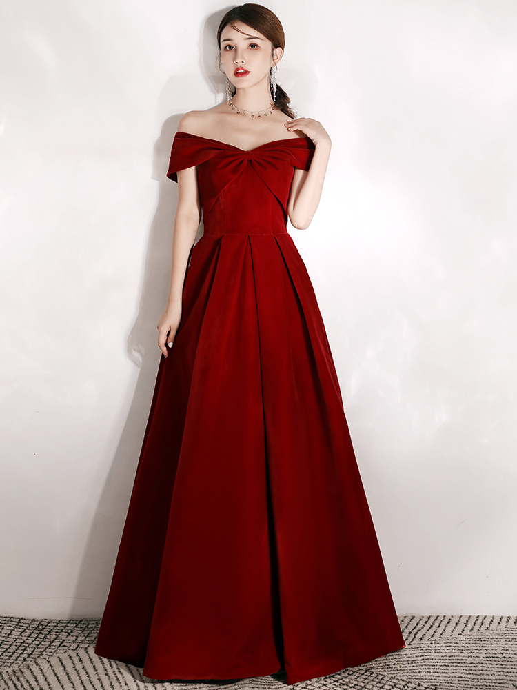 - A line velvet long prom dress simple evening dress -