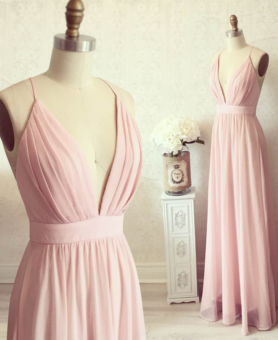 - Pink chiffon prom dress simple evening dress -