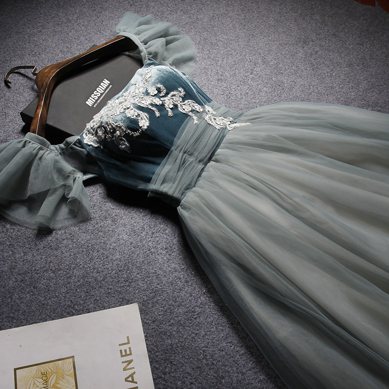 A line velvet tulle prom dress homecoming dress
