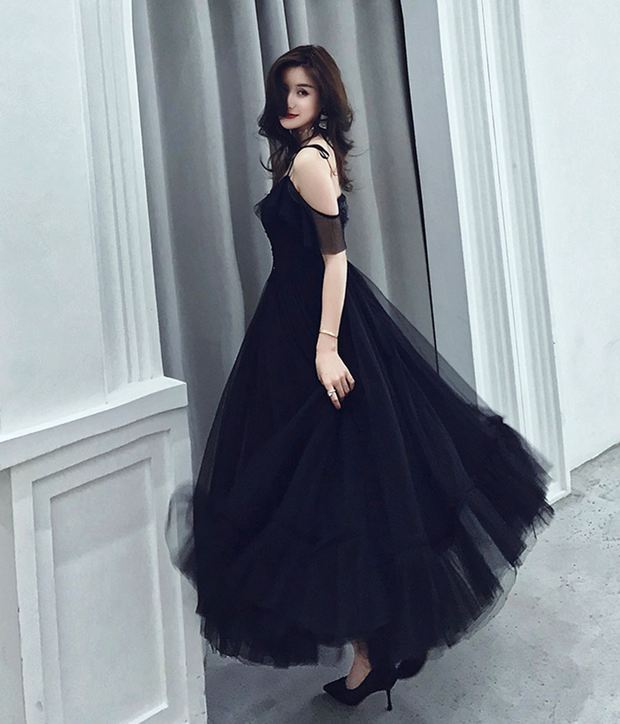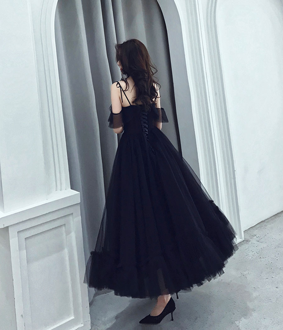 Black tulle tea length prom dress