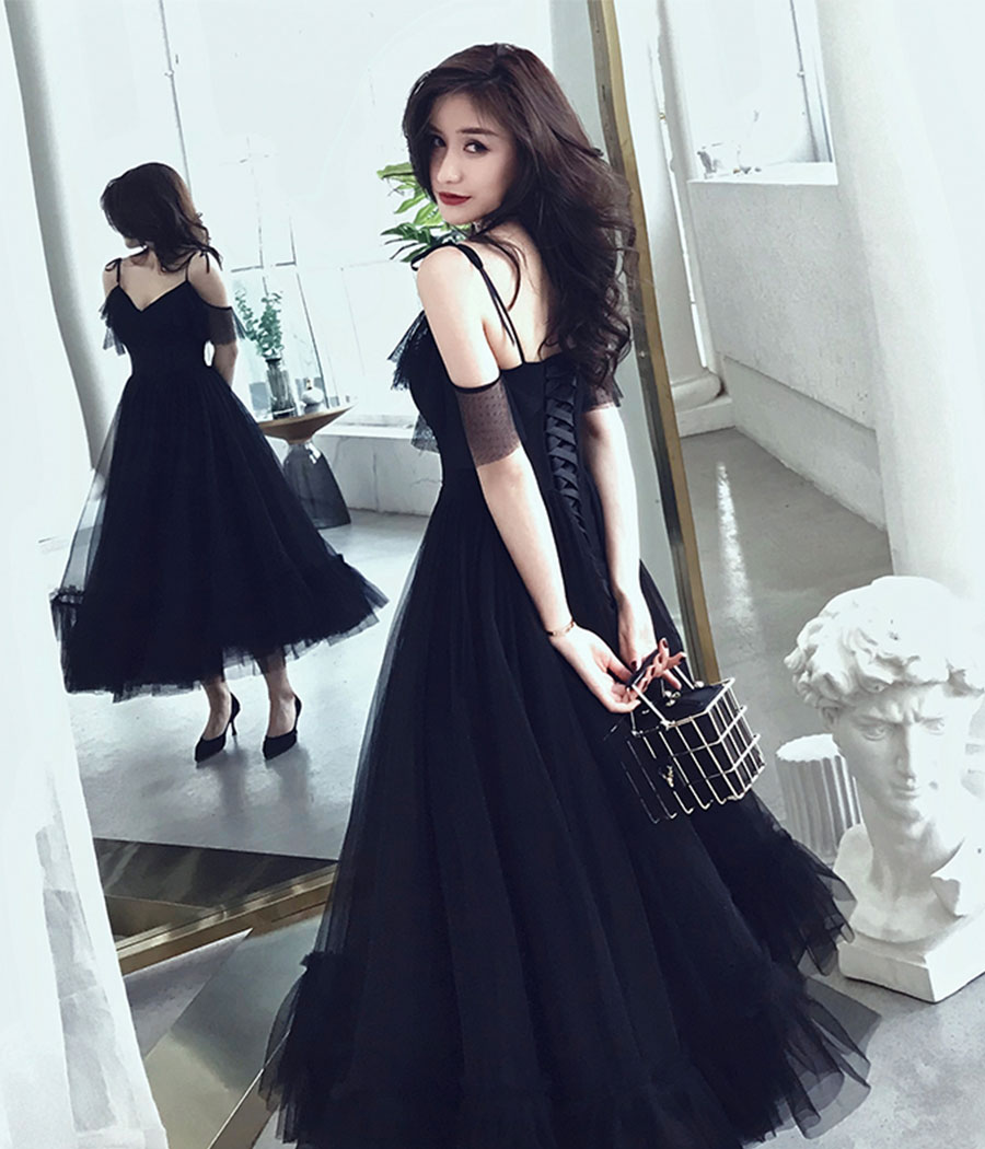 - Black tulle tea length prom dress -