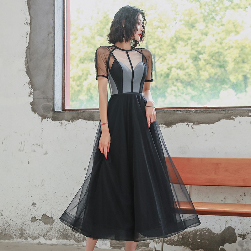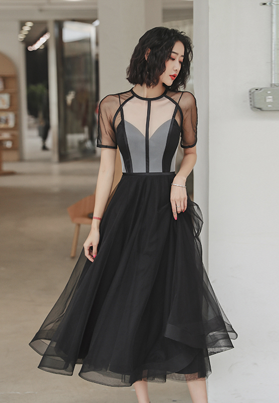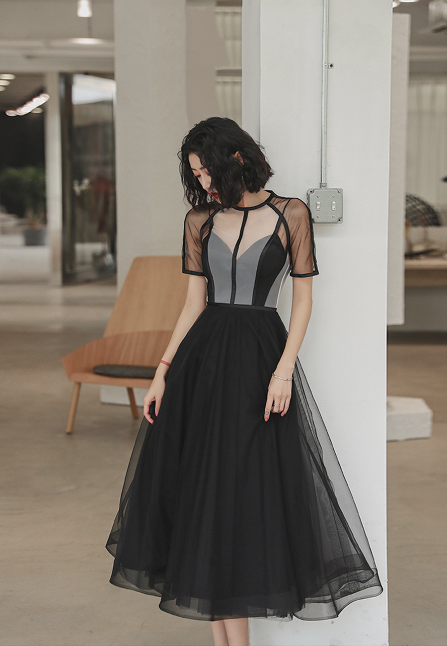 - Black tulle short prom dress party dress -
