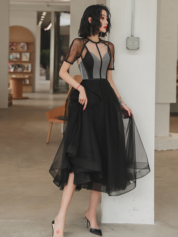 Black tulle short prom dress party dress