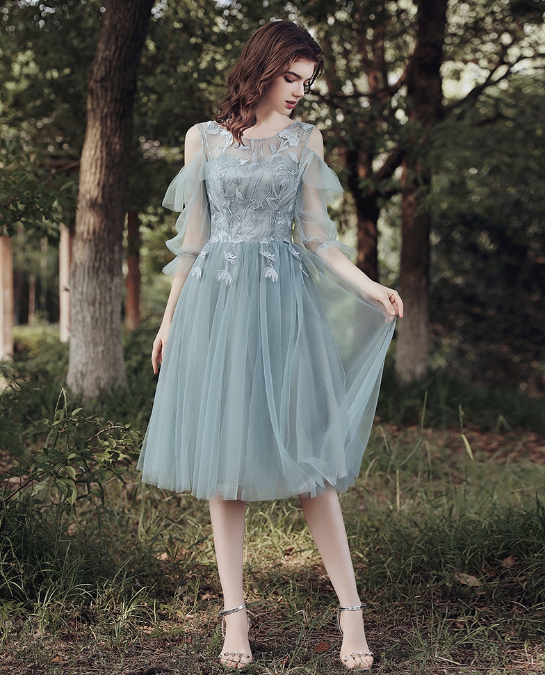 - Cute lace tulle short prom dress party dress -