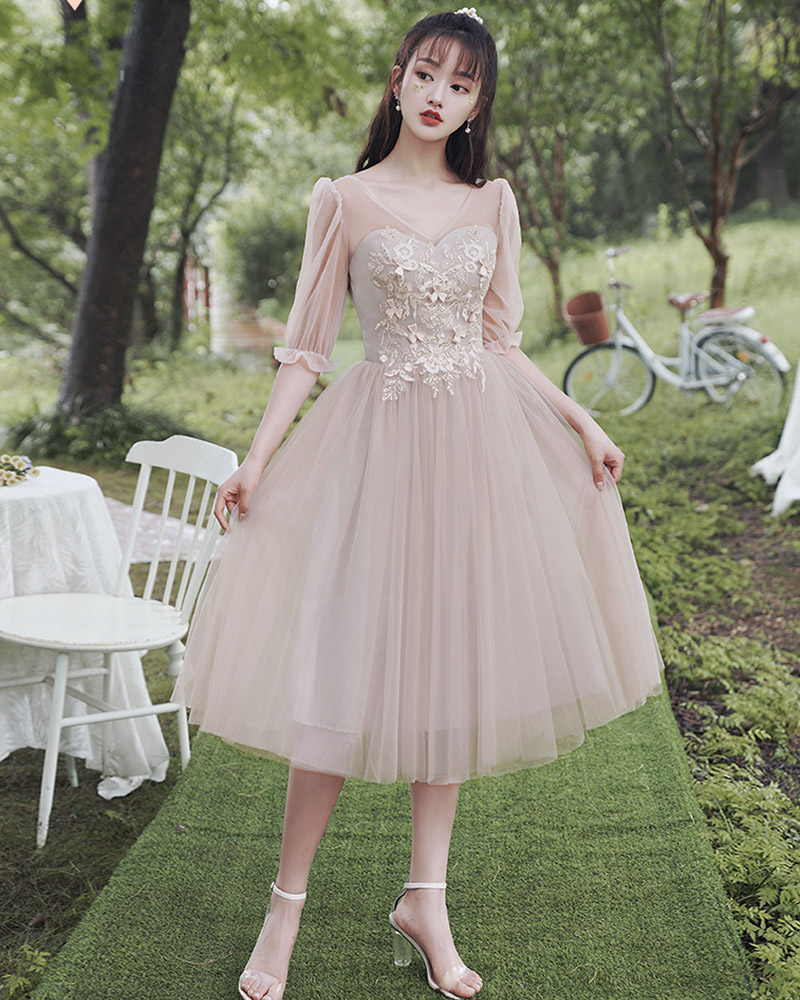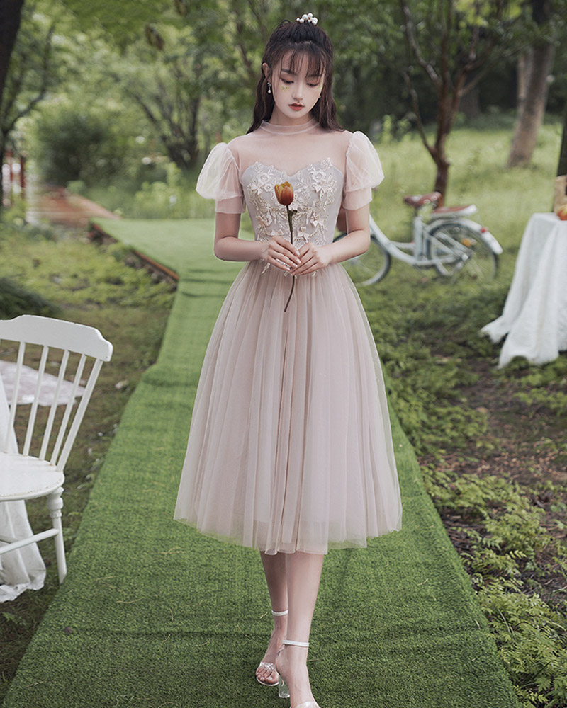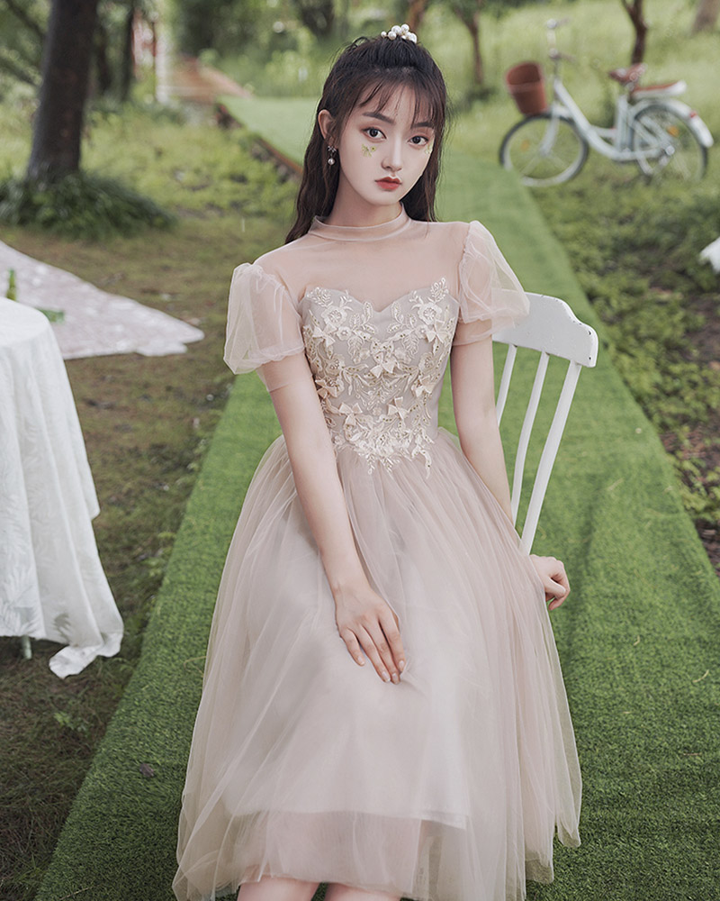 - Cute tulle lace short prom dress party dress -