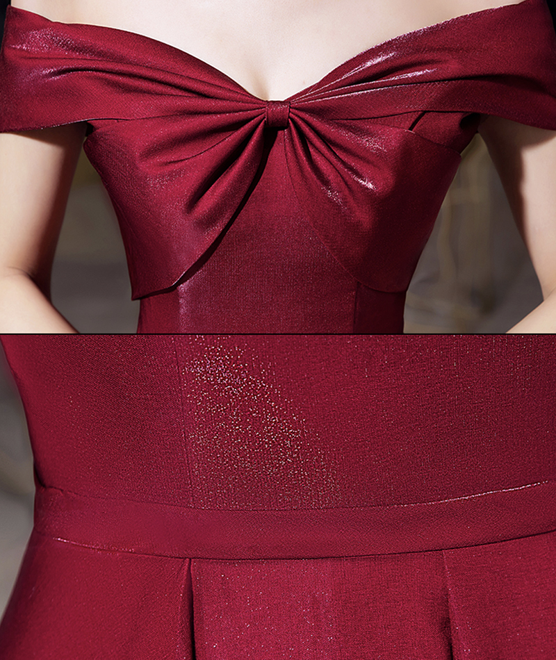 - Shiny satin long prom dress burgundy evening dress -
