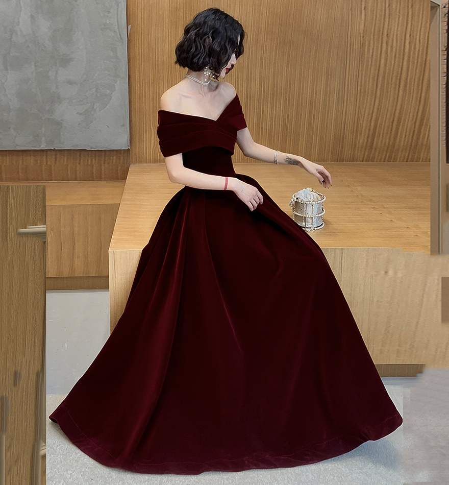 - Elegant Velvet Long Prom Dress Evening Dress -