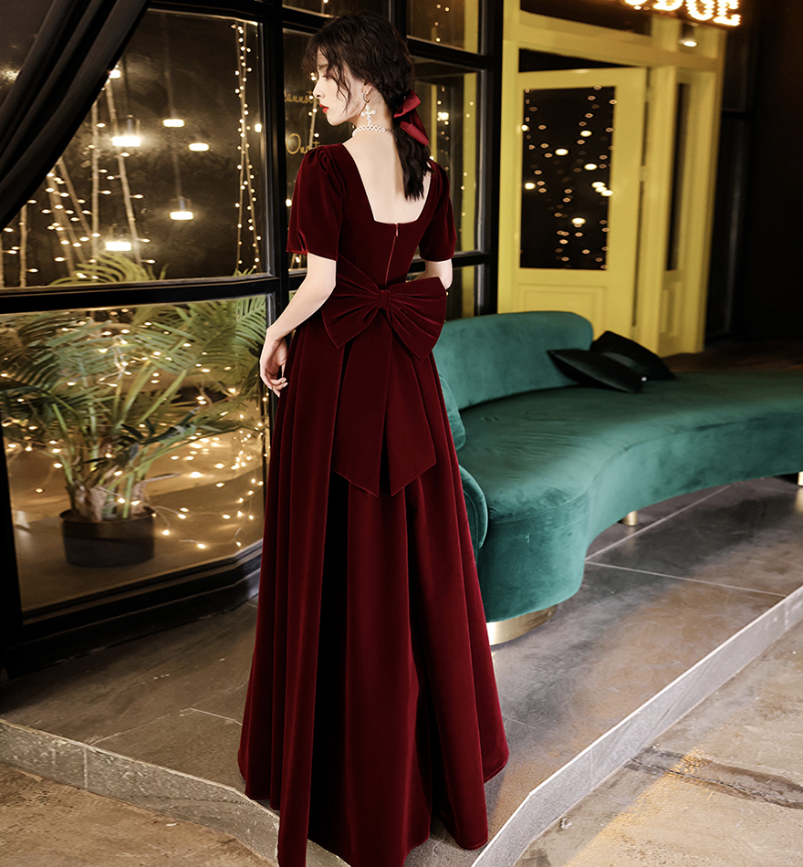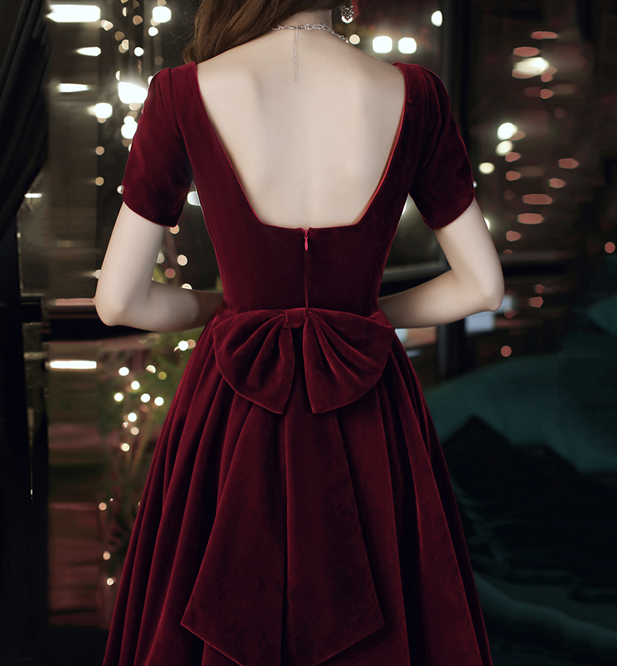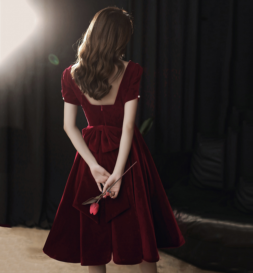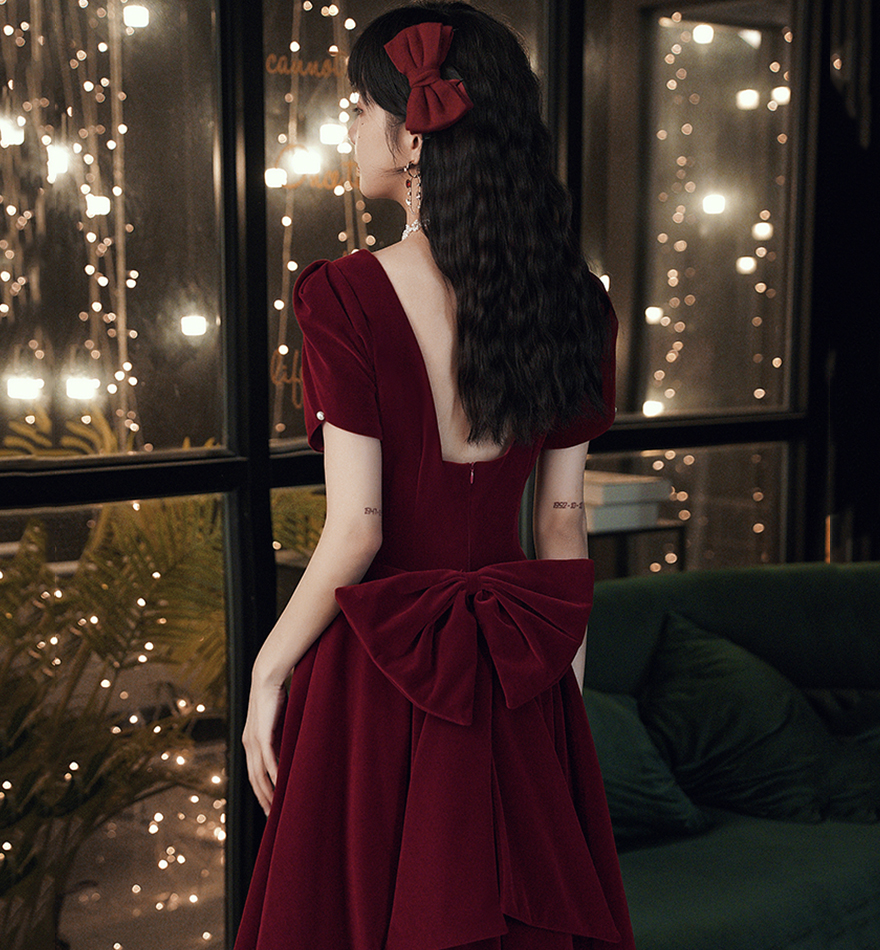 - Cute velvet short prom dress with bow party dress -