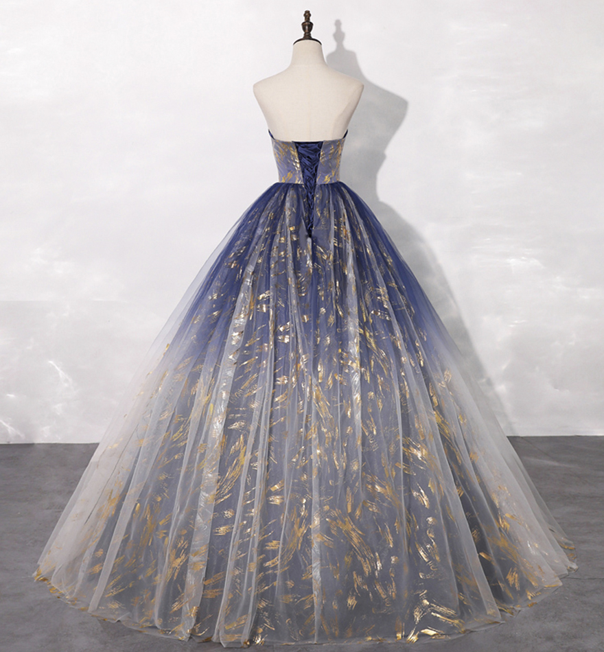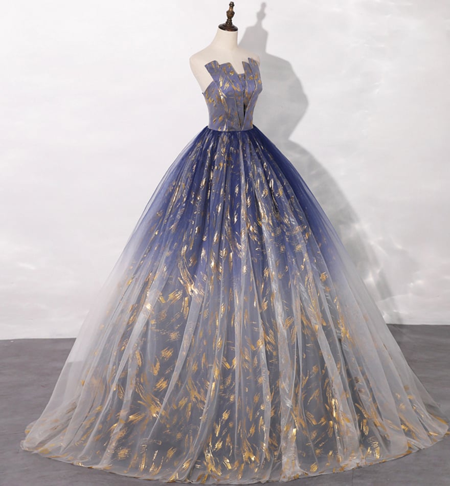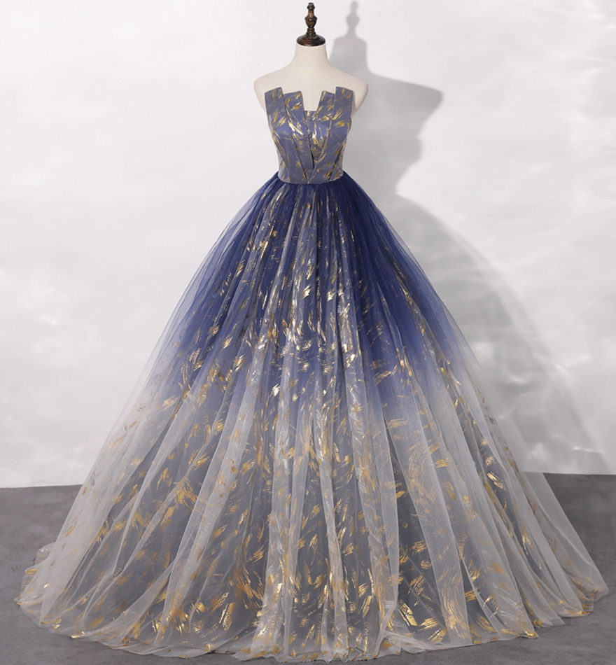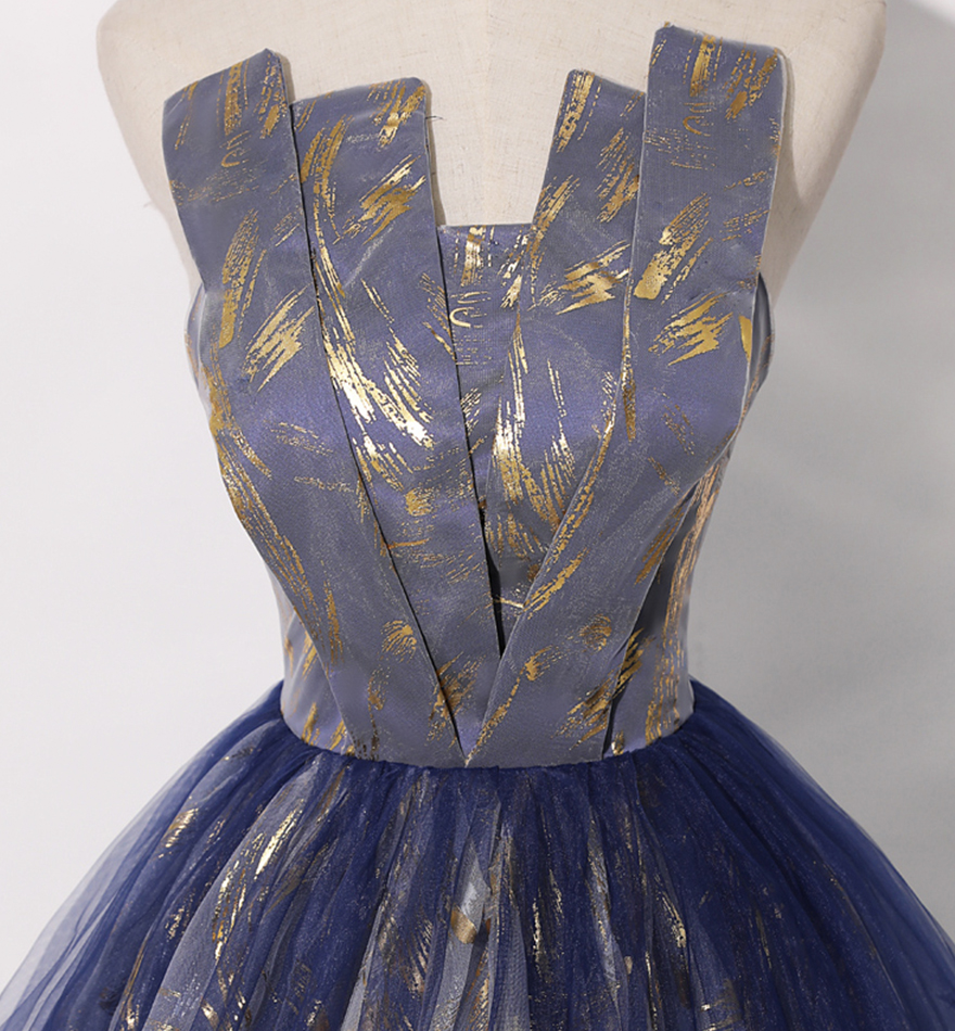 - Blue tulle long prom gown blue evening dress -