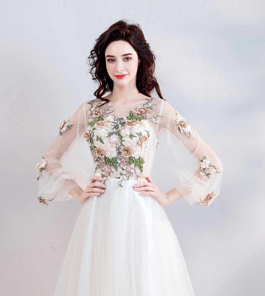 Light champagne lace long prom dress evening dress