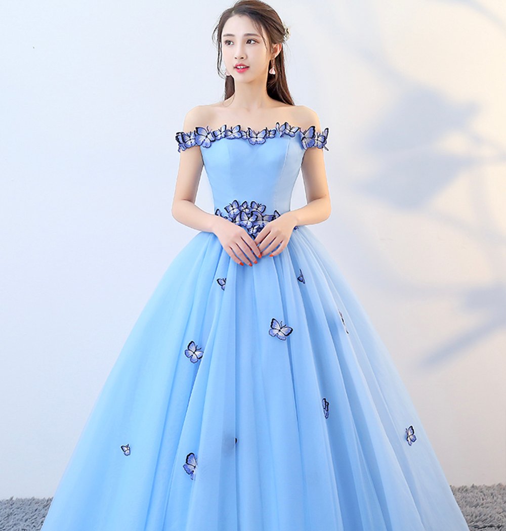 - Blue tulle long ball gown dress formal dress -