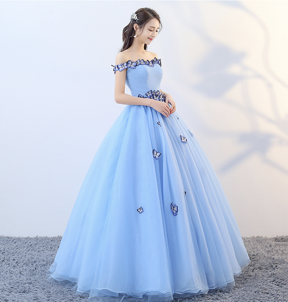 Blue tulle long ball gown dress formal dress