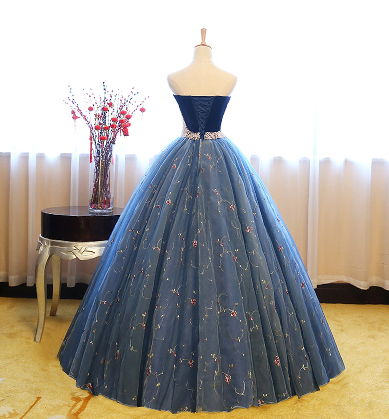 - Blue tulle lace long ball gown dress blue evening dress -