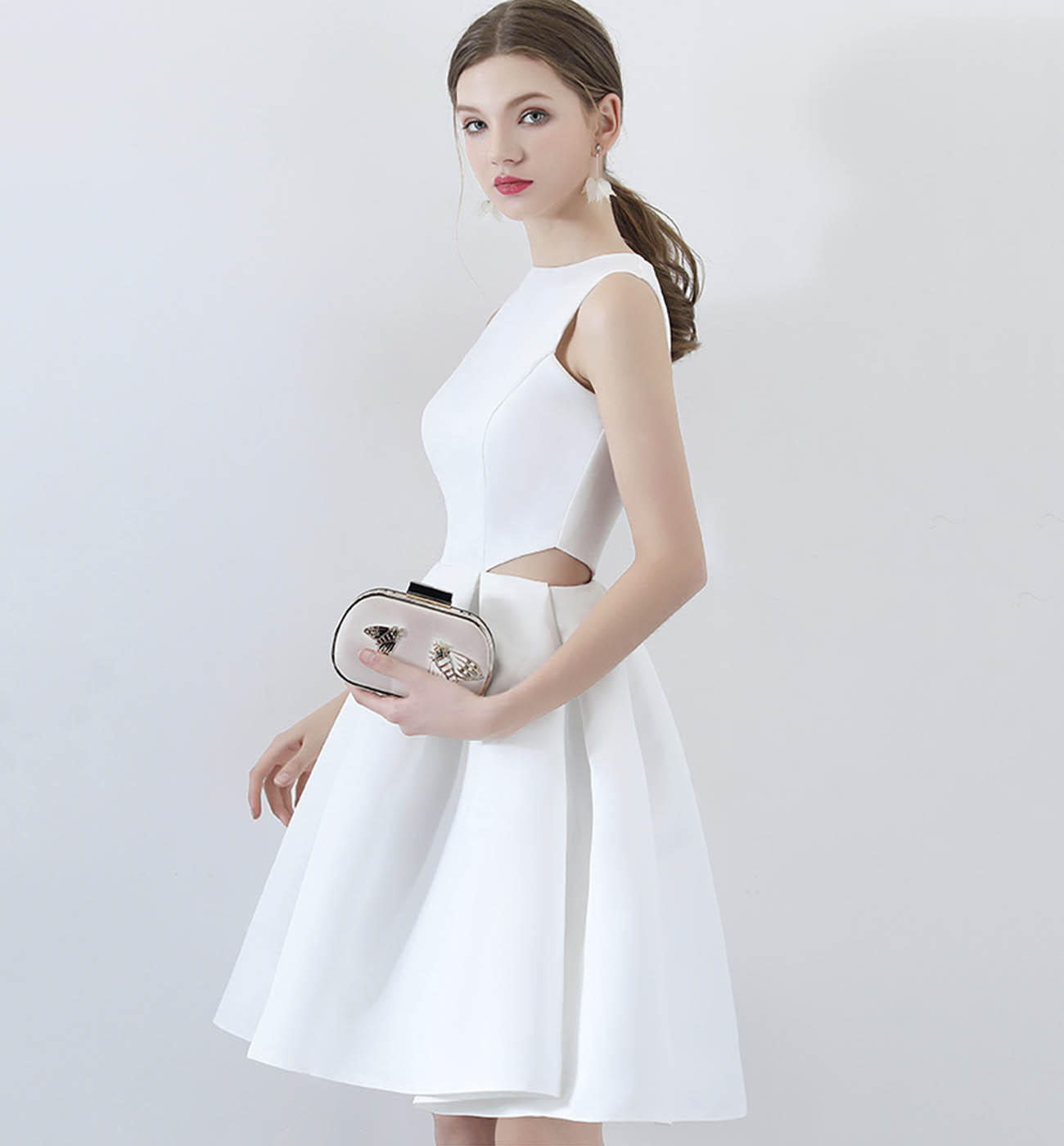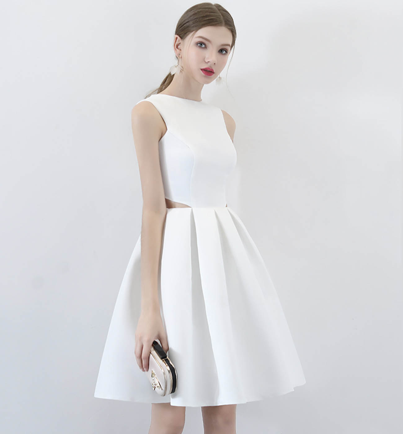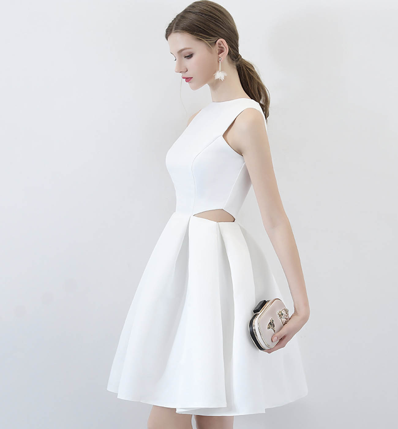 White satin short prom dress cute evening dress