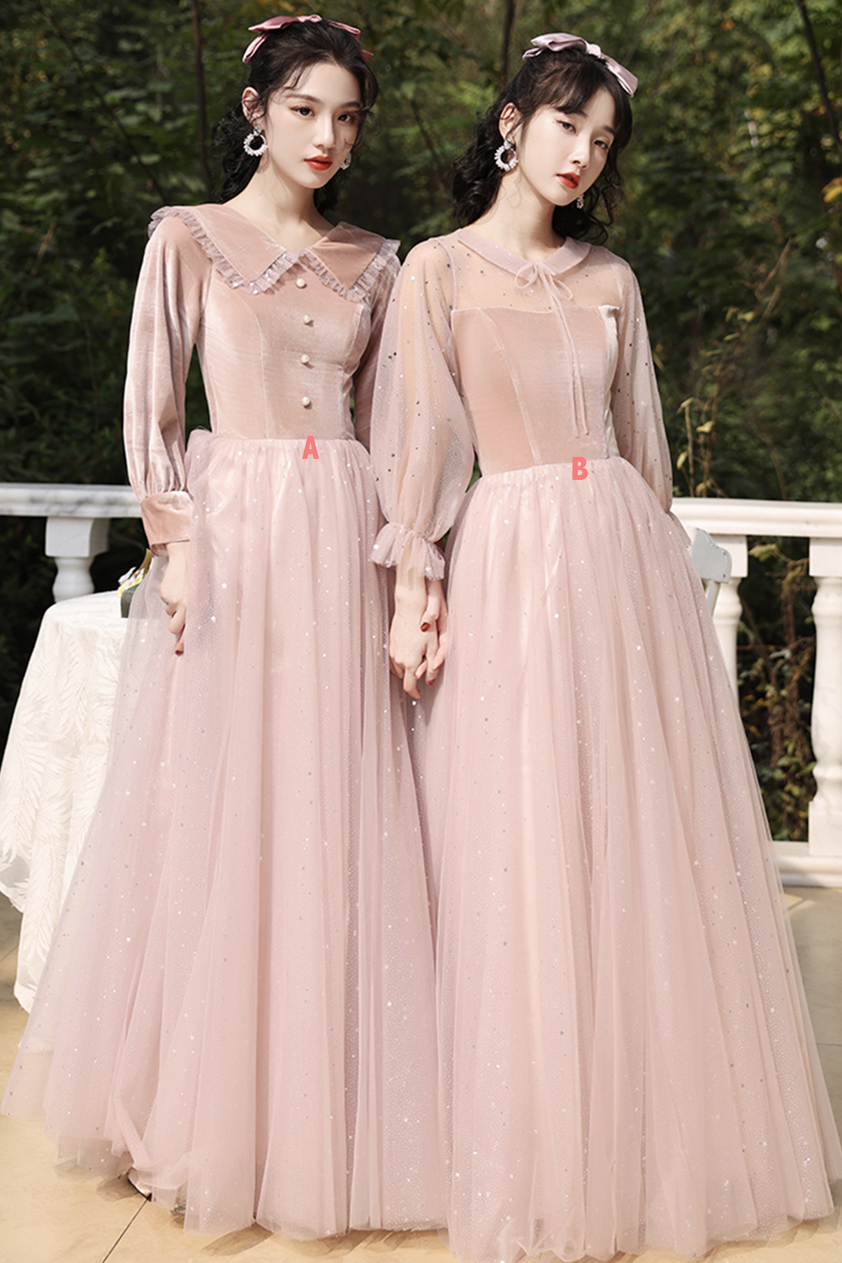 - Cute velvet tulle long prom dress pink evening dress -