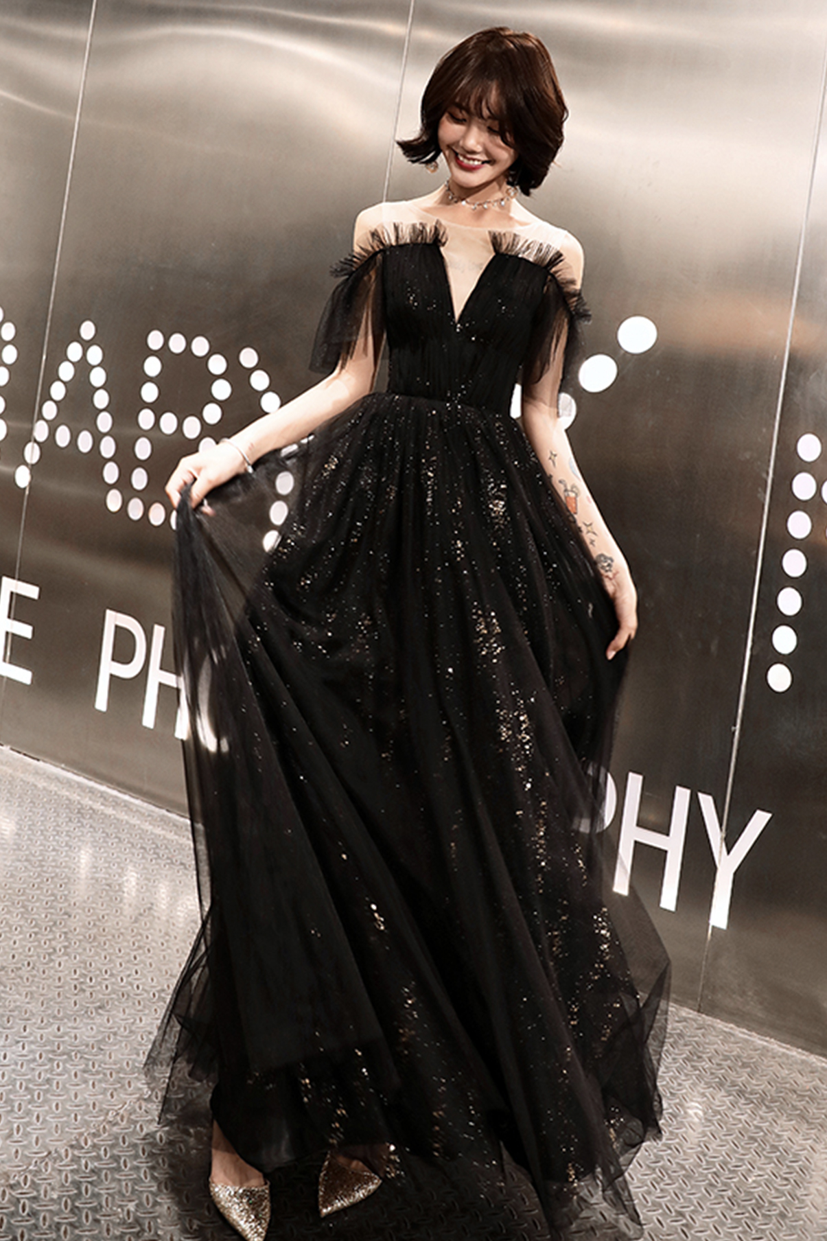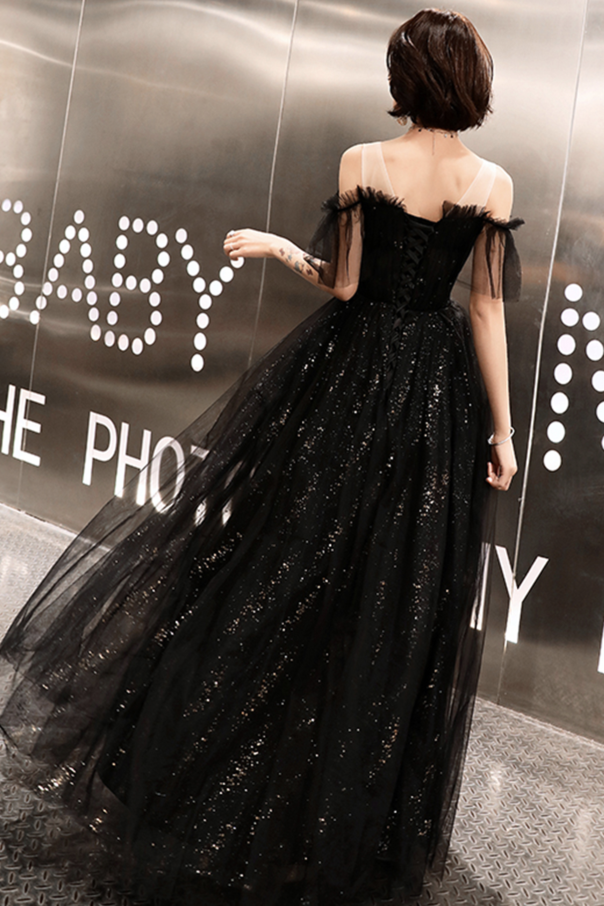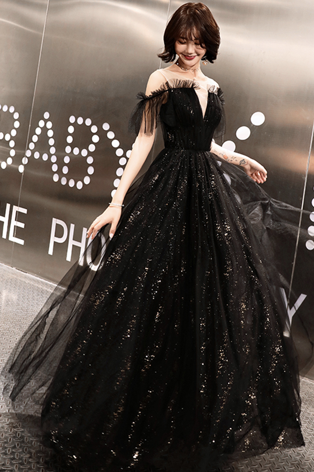 Fabric: tulle, sequins