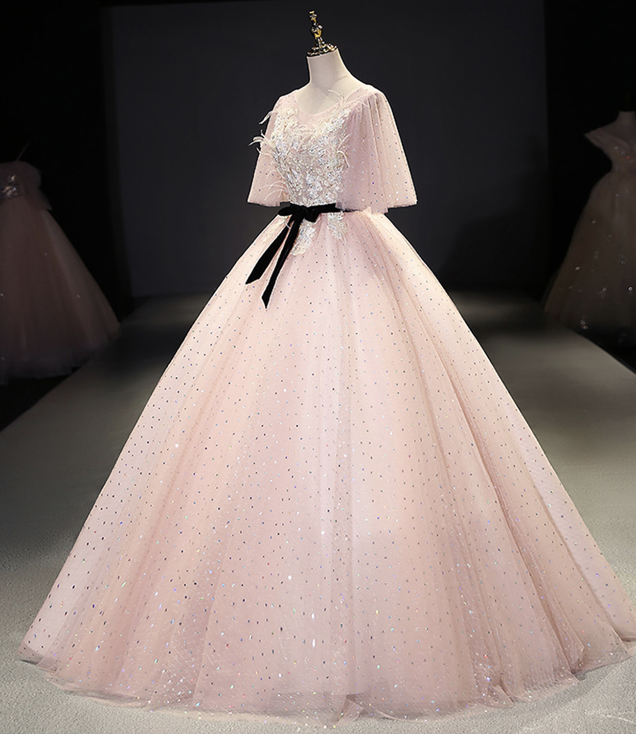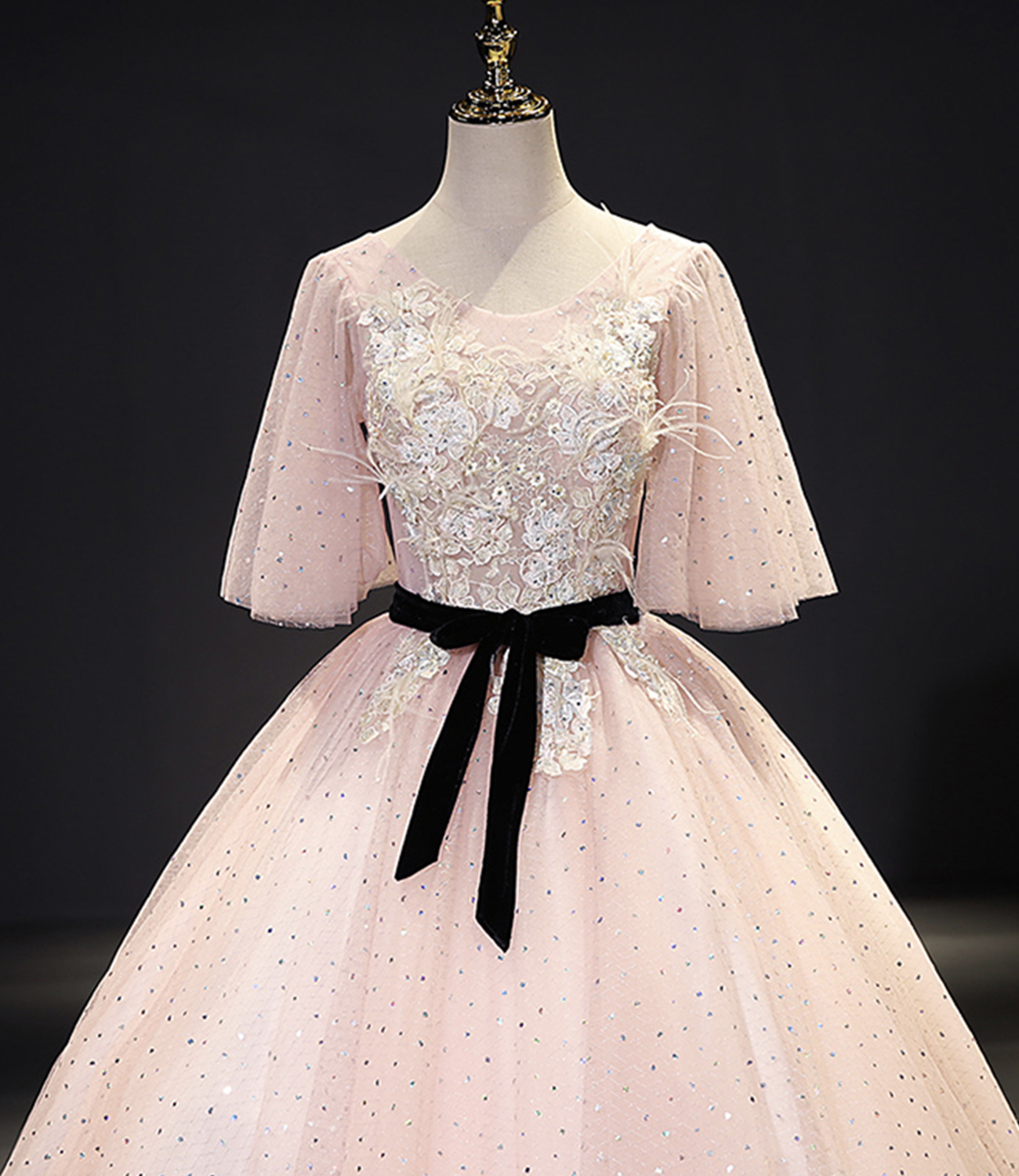 - Pink tulle lace long ball gown dress fahion dress -
