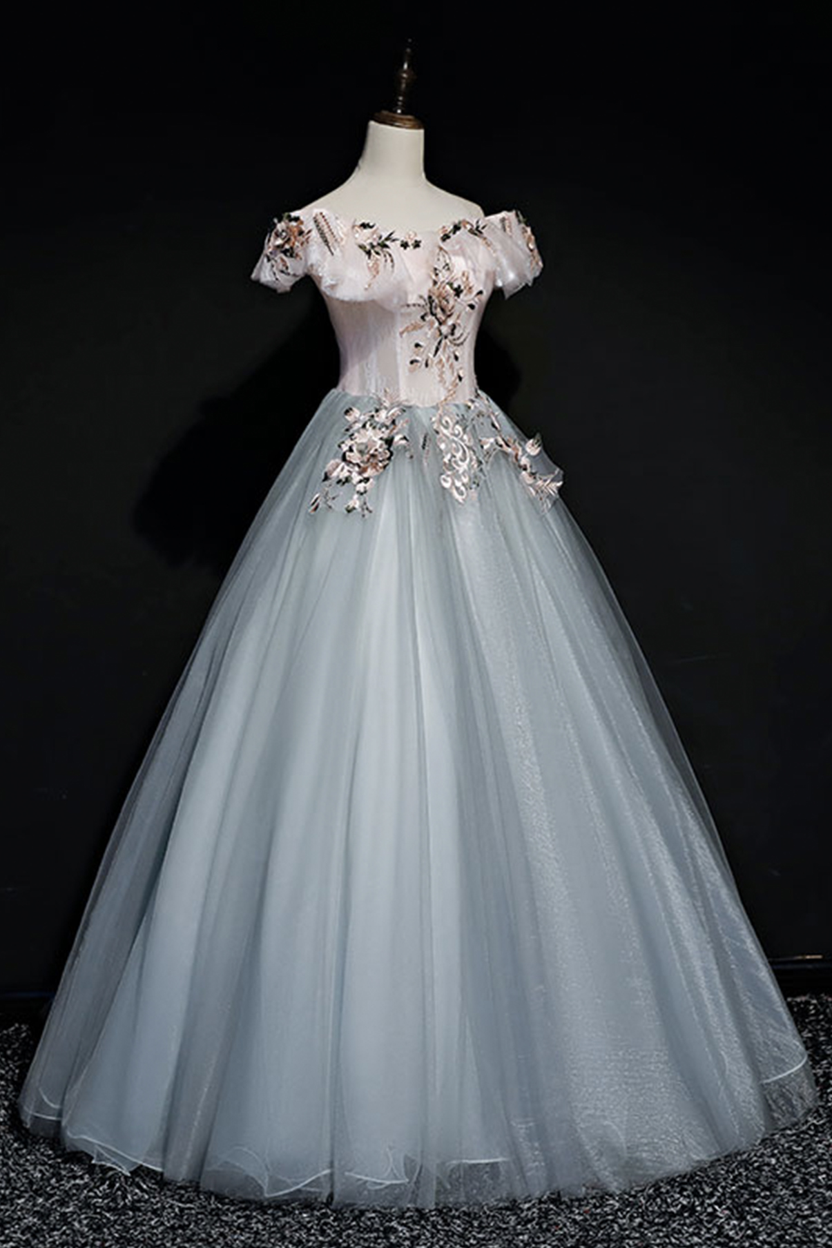 - Gray tulle lace long ball gown dress formal dress -