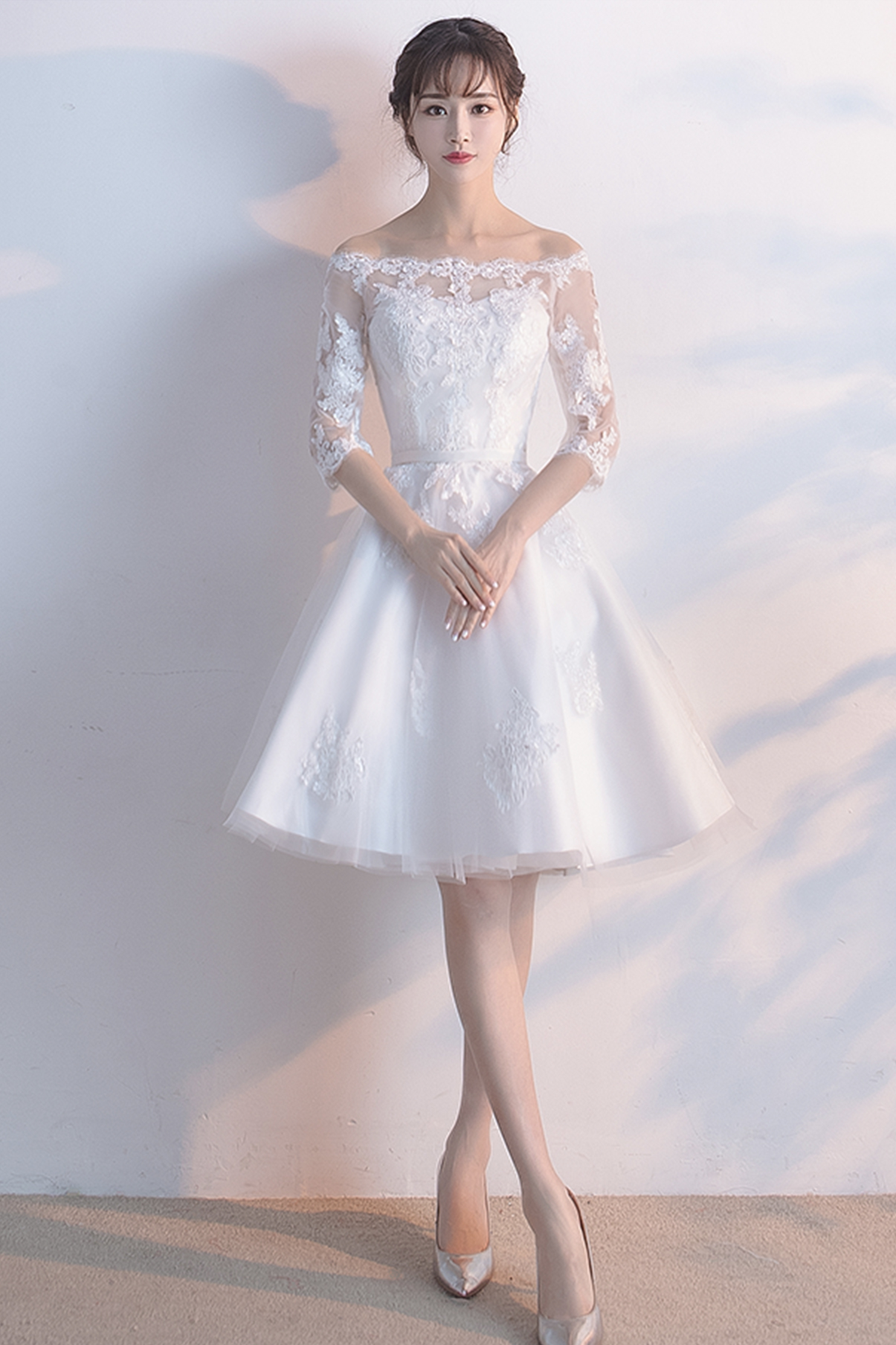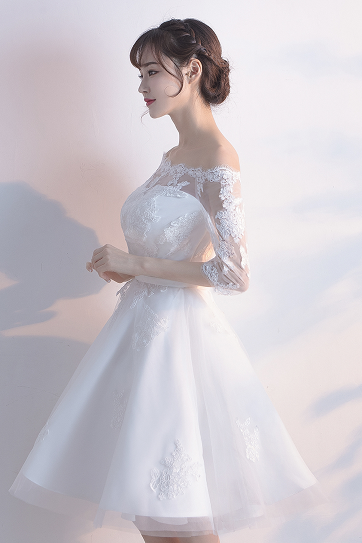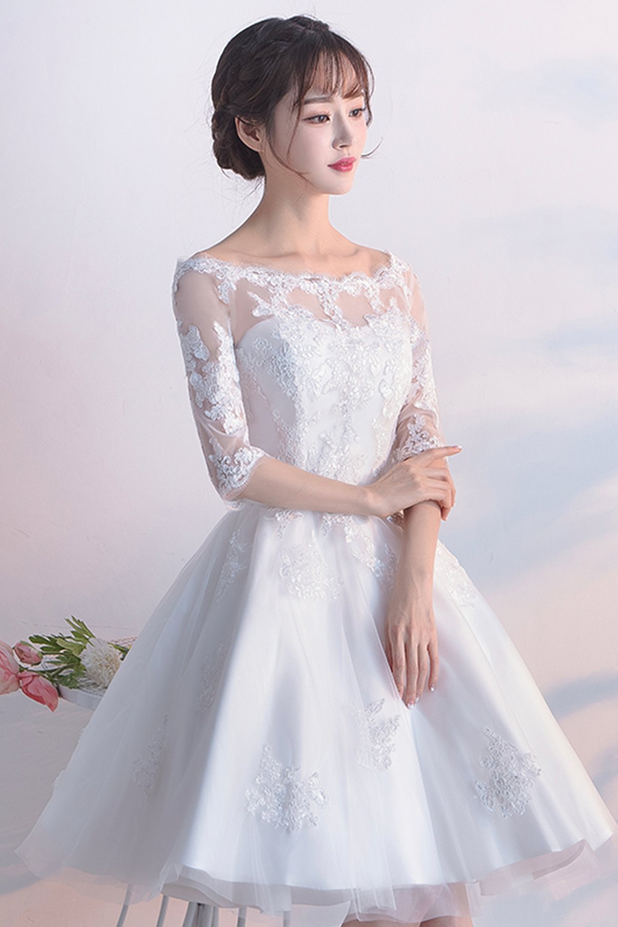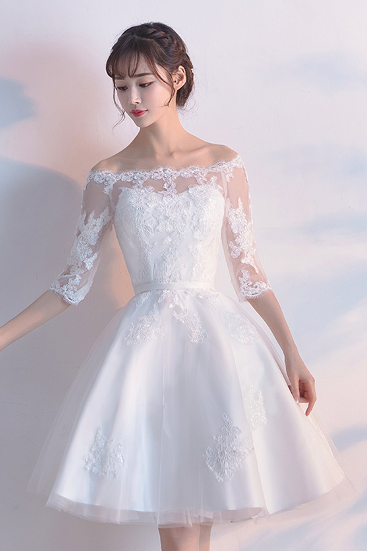 White lace short A line prom dress fashion dress
