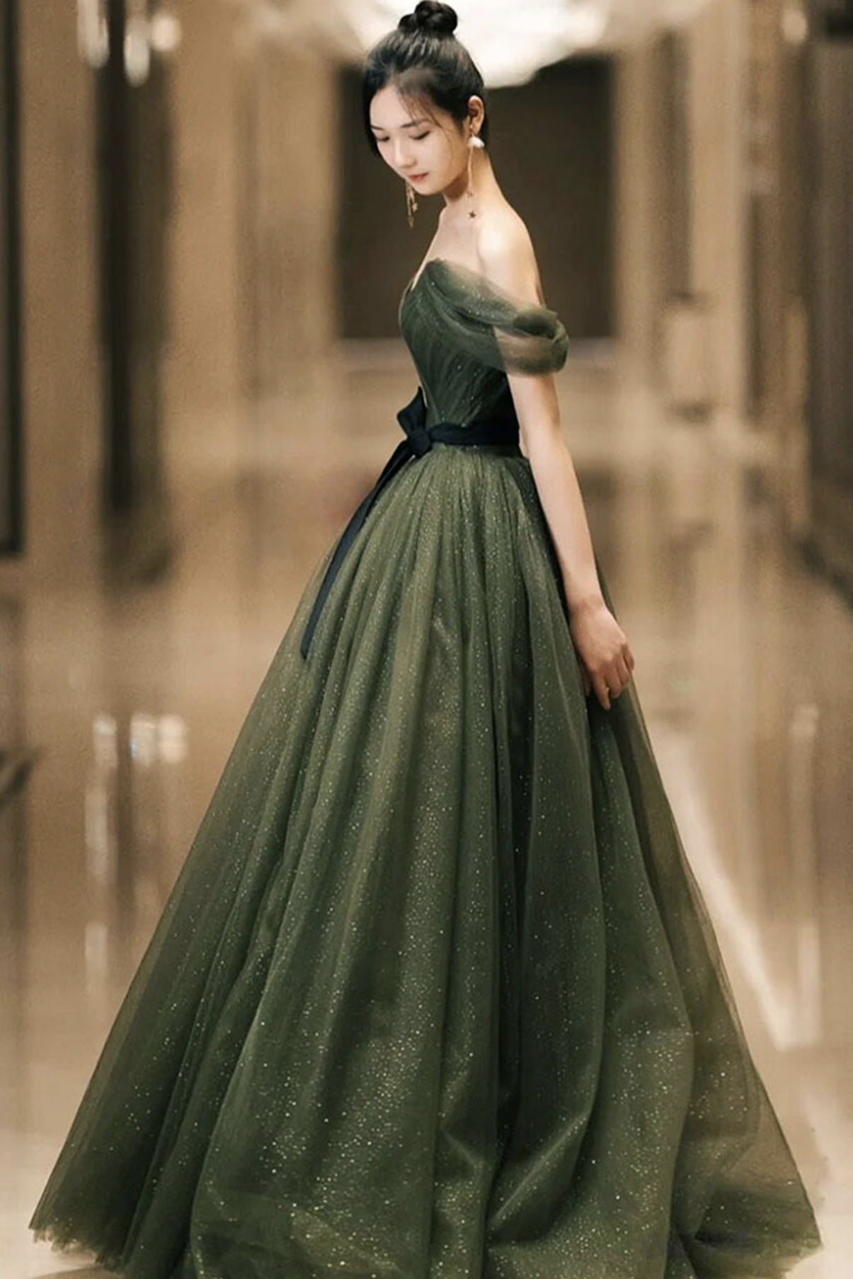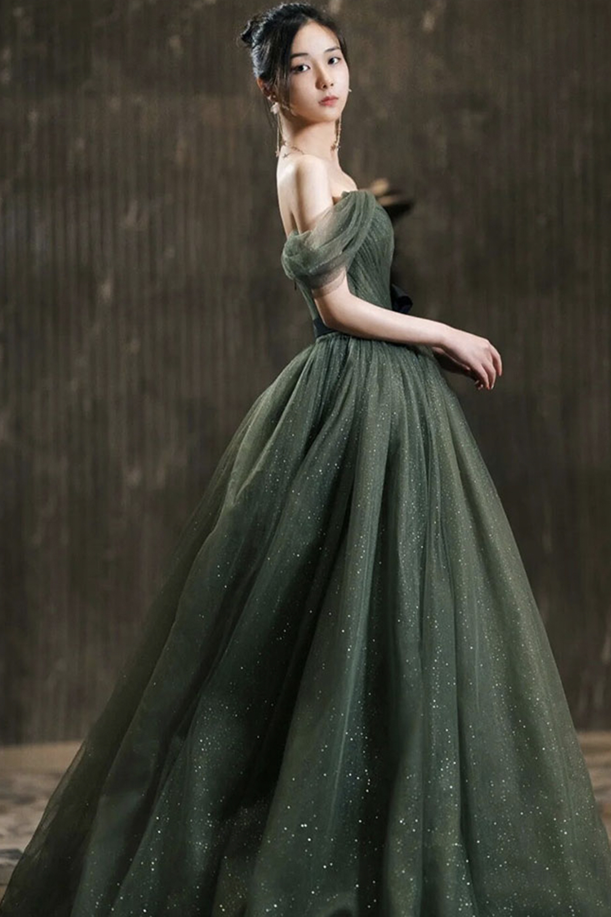 - Green Tulle Long A Line Prom Dress Evening Dress -