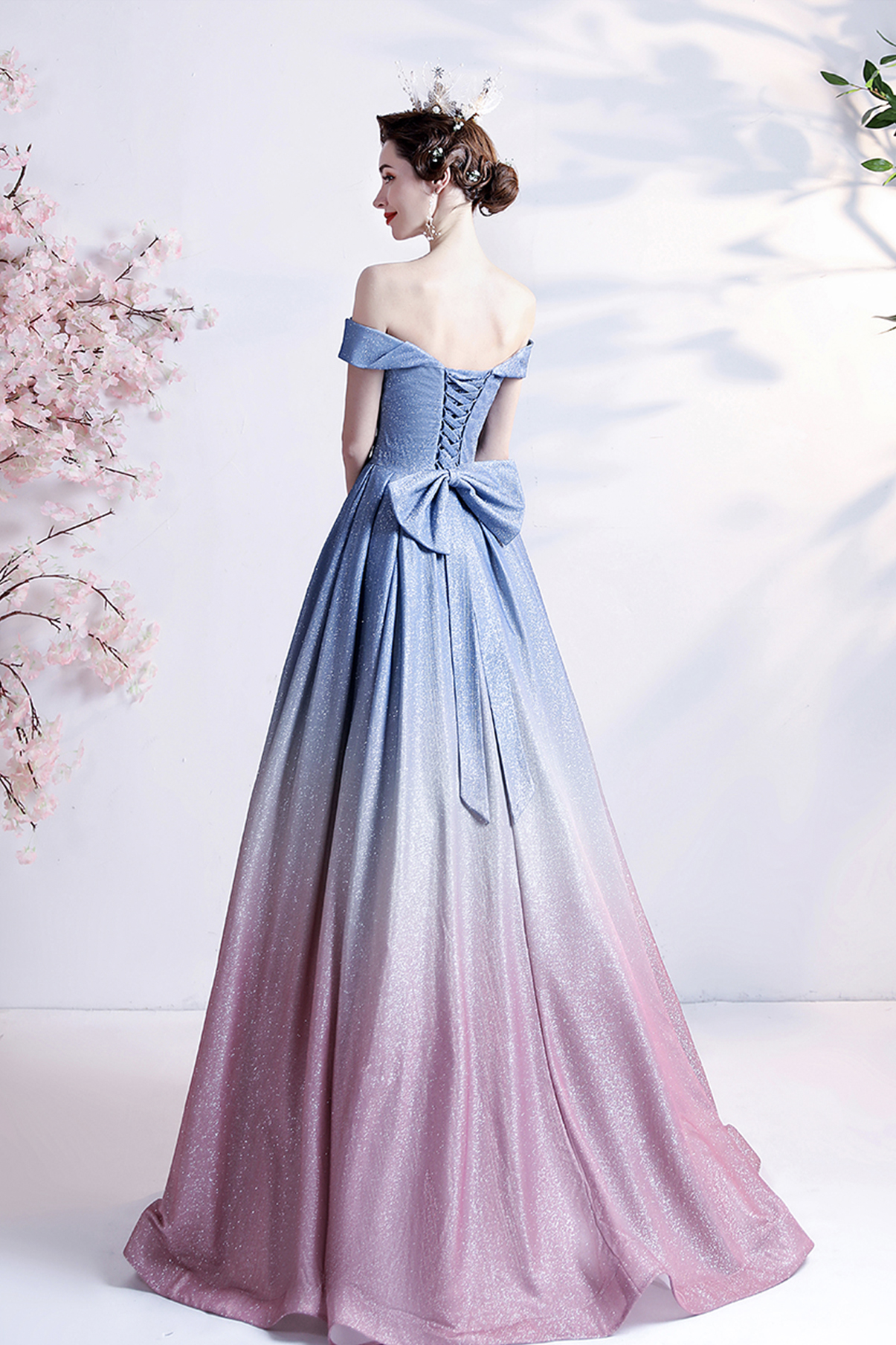 - Stylish blue gradient long A line prom dress blue evening dress -