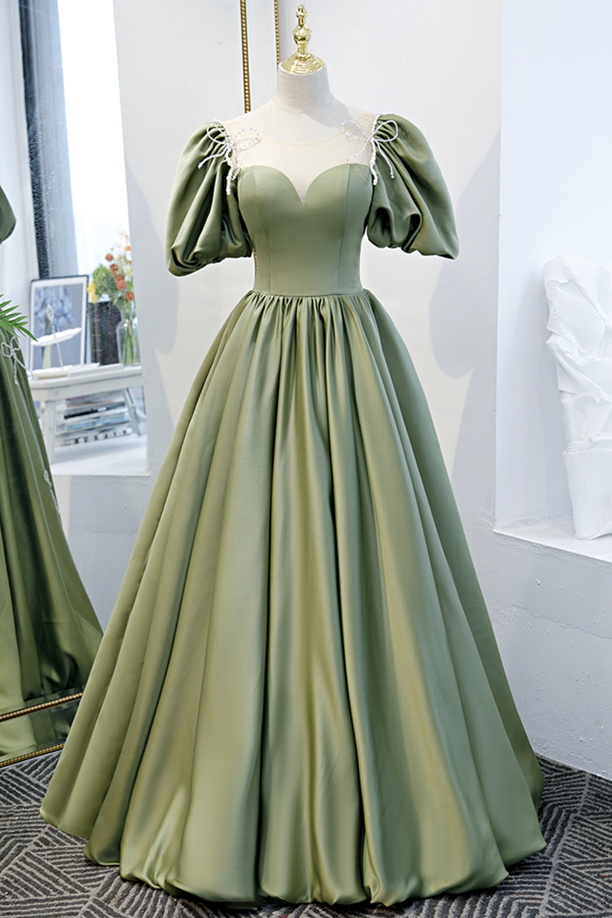 - Green Satin Long A Line Prom Dress Evening Dress -