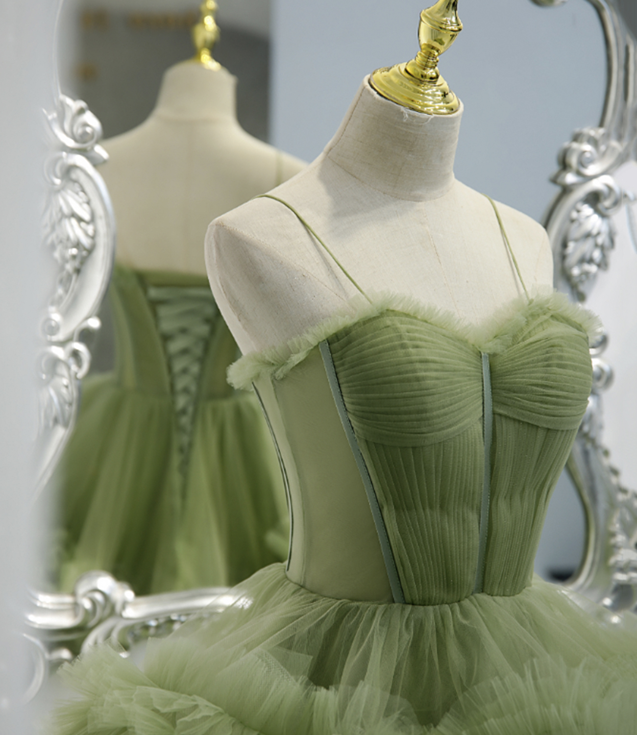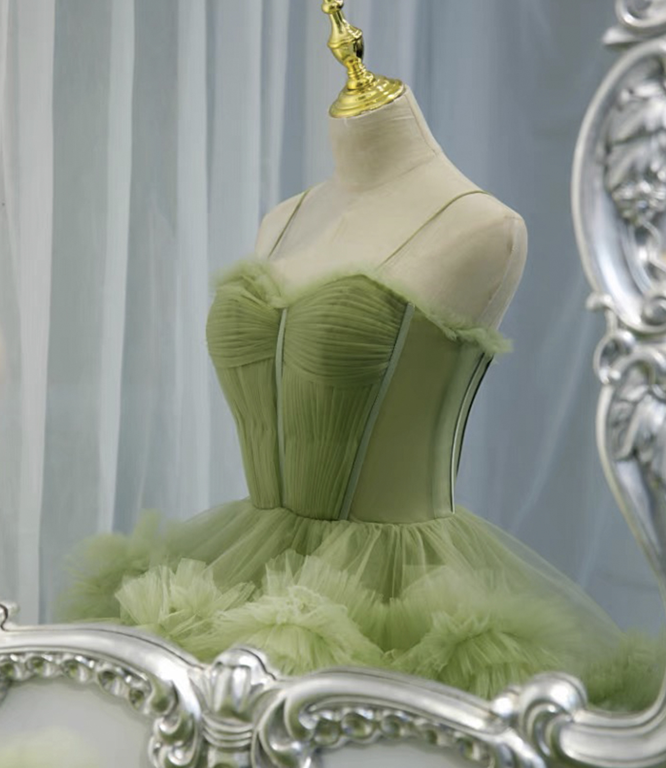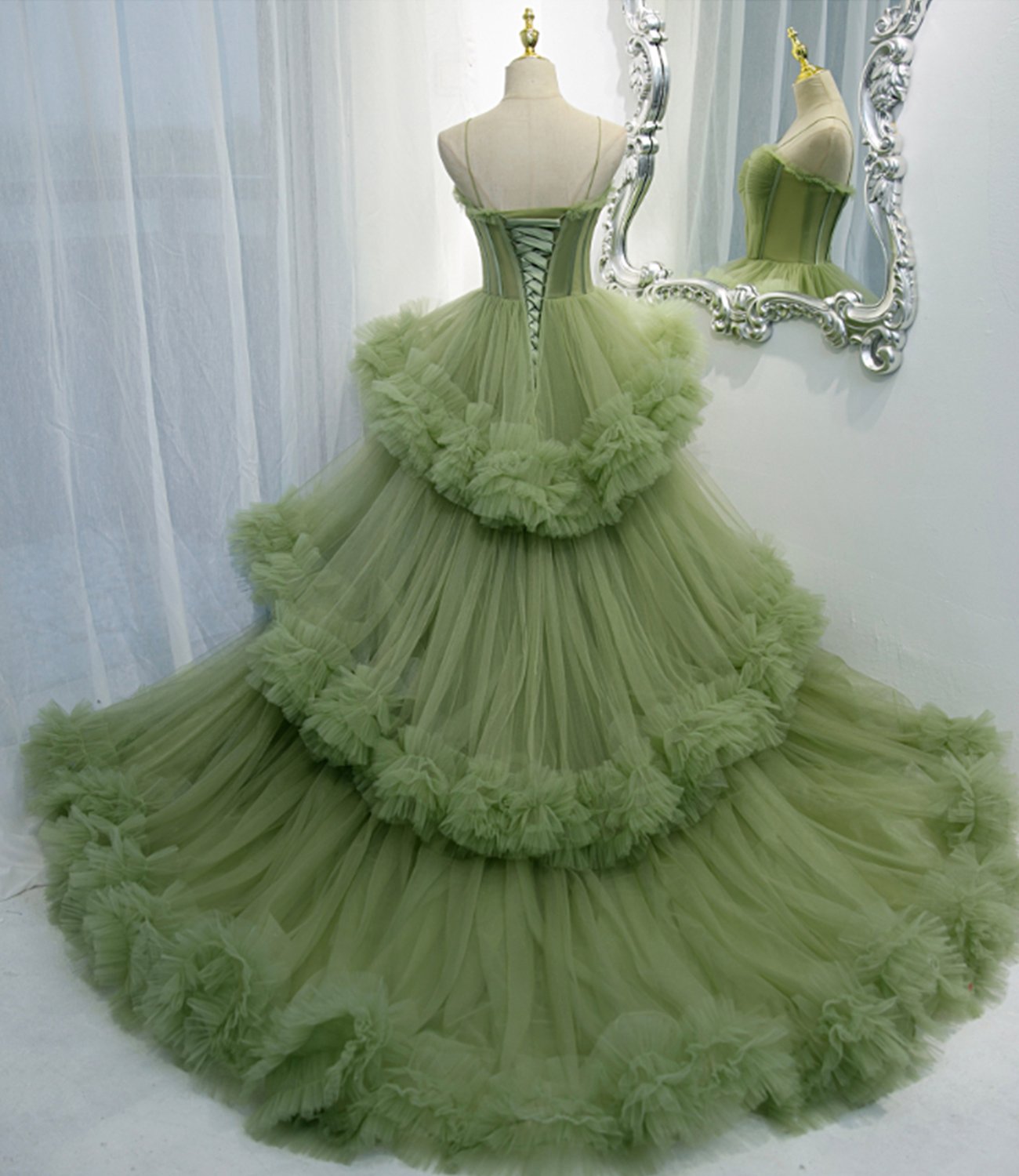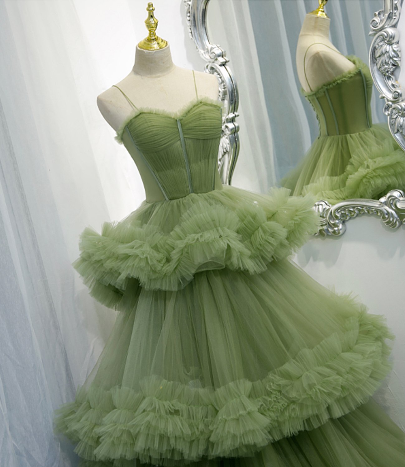 - Green Tulle Long A Line Prom Dress Green Evening Dress -