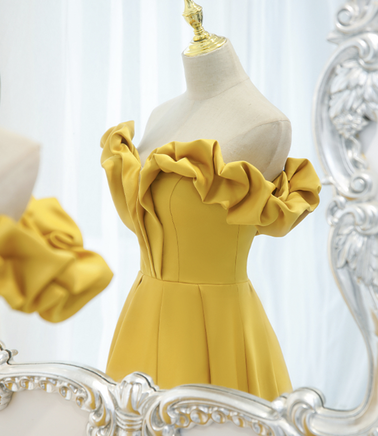 - Yellow satin long A line prom dress evening dress -