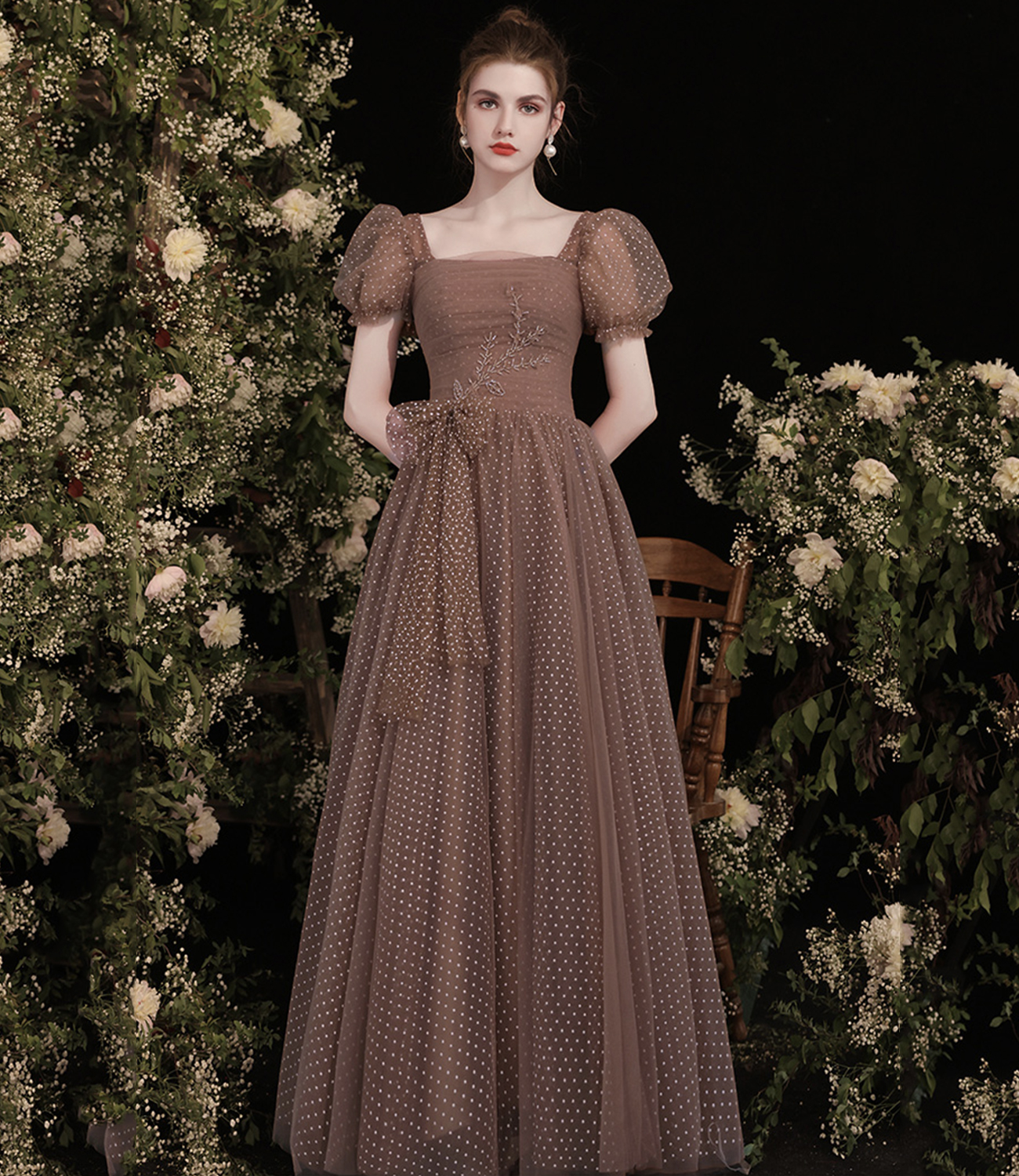 - Cute tulle long A line prom dress evening dress -