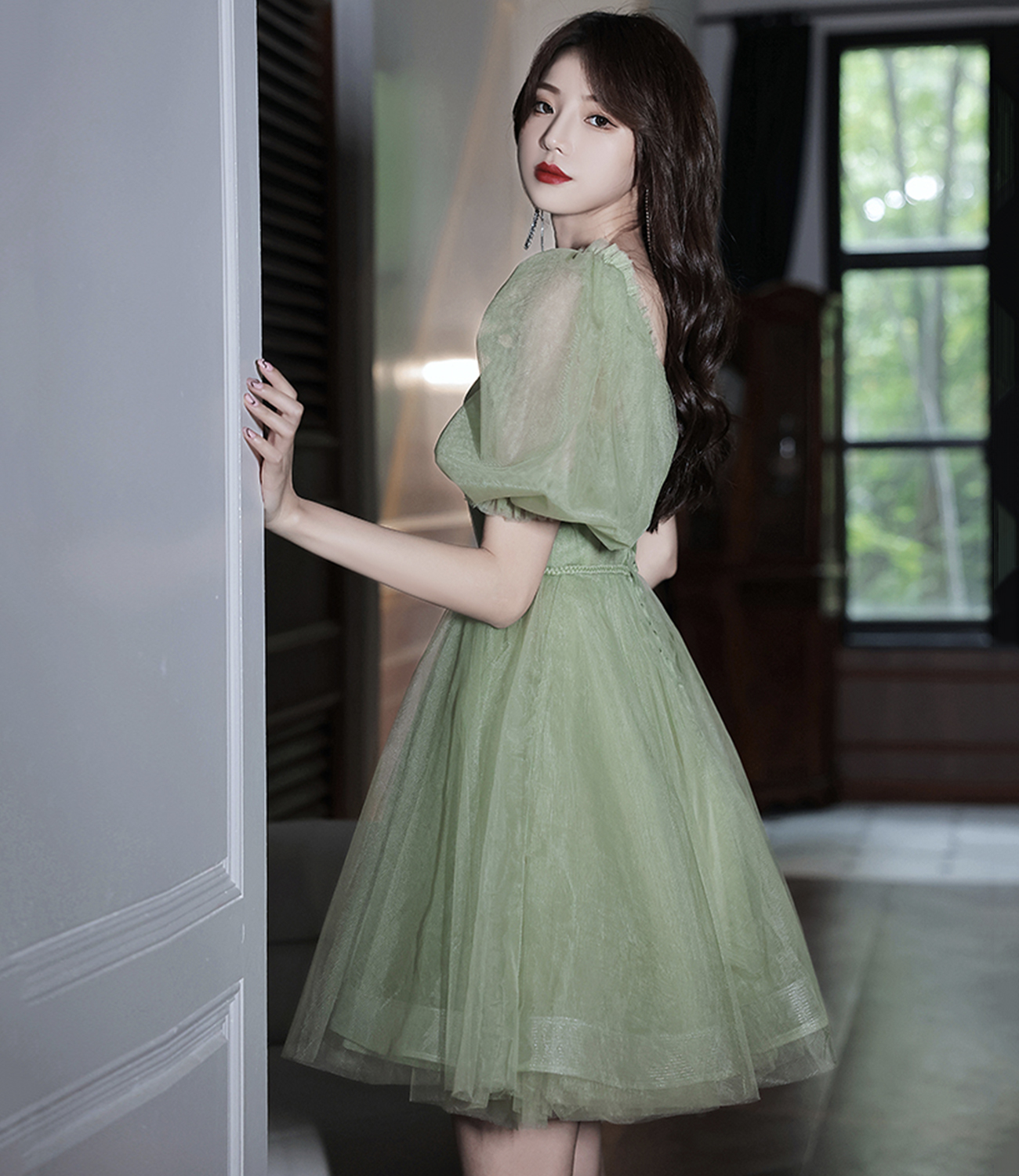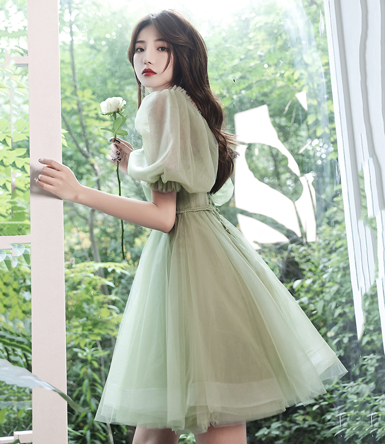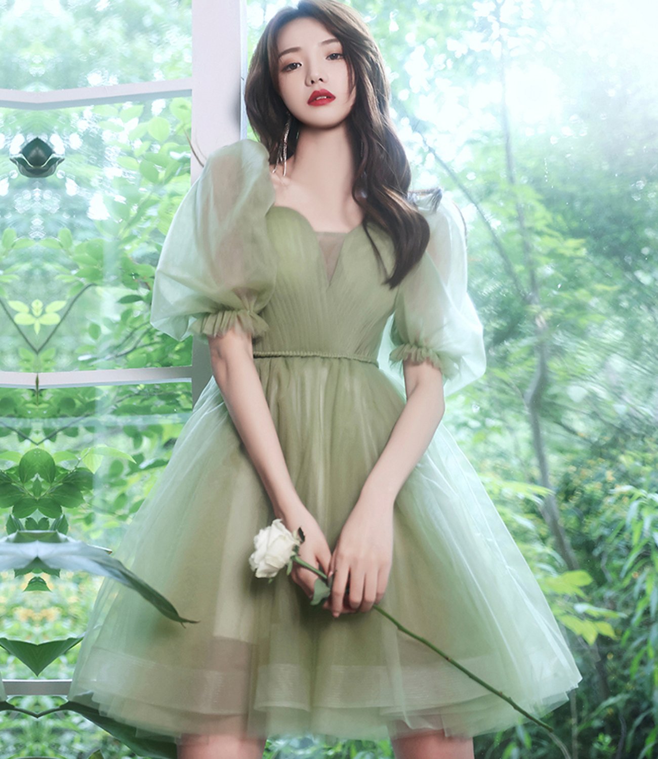 - Green Tulle Short Prom Dress Homecoming Dress -